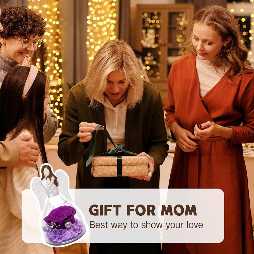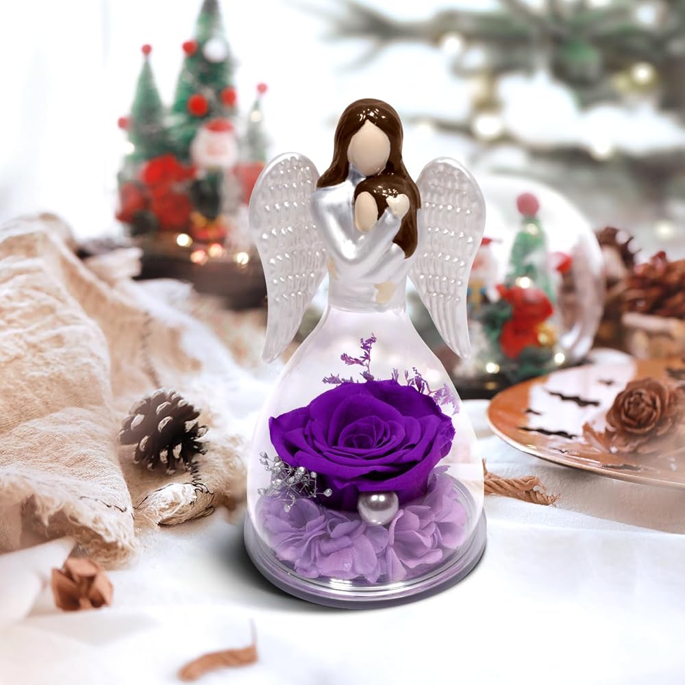Mother Daughter Gifts :The angel of a mother and daughter embracing tightly together symbolizes the mother's selfless love and protection of her daughter, as well as the daughter's attachment and overflowing with love to her mother, the eternal rose symbolize forever love between mother and daughter. Get this angel rose gifts for mom daughter.