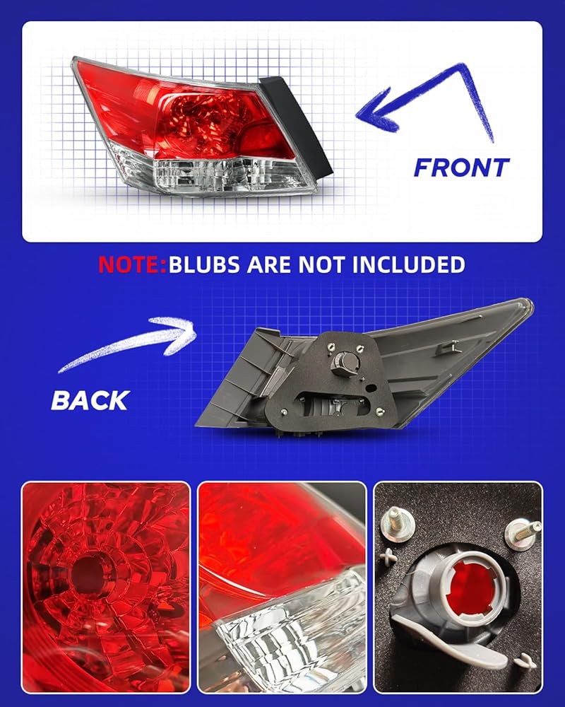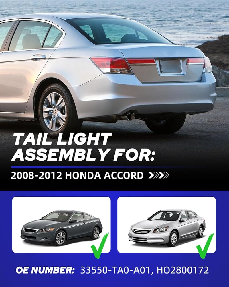 【Fitment】-AUTOONE OEM Honda Accord tail light assembly is compatible with 2008-2012 Honda Accord Left. Please confirm the OE number before purchasing our tail light assembly: 33550-TA0-A01.