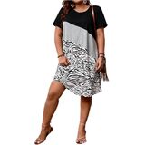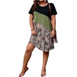 - Plus size summer colorblock short dresses for women