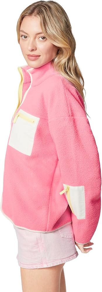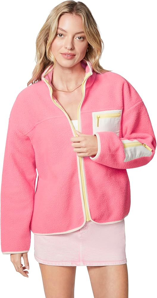 Cozy up in style with this zip-up fleece featuring an easy-breezy boxy fit, rad contrast binding detail all around, and cute woven patch pockets at the chest and left sleeve, topped off with a snazzy enamel logo zipper puller.