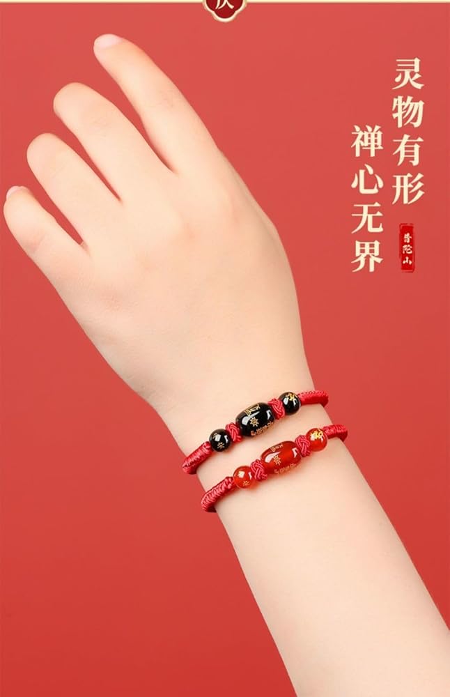 【Adjustable Size】:Fengshui red rope bracelet length:6.5-10inch(Adjustable rope), beads (diameter: 10mm, material: red agate), agate bead is engraved with golden zodiac dragon, which can absorb negative energy and make the anxiety relax and calm down.