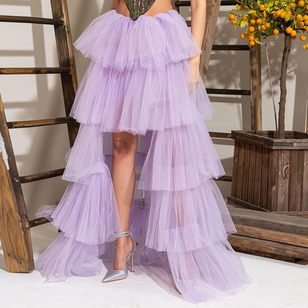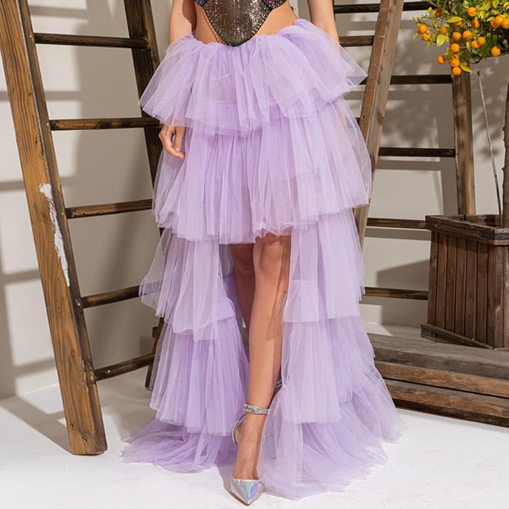 Unique Design: A line shape, tulle material, maxi length, tulle tiered ruffle hem. Women Puffy Maxi Skirt, A Line Elastic Waist Tulle Skirt is just the right length to show off her legs without losing her modesty