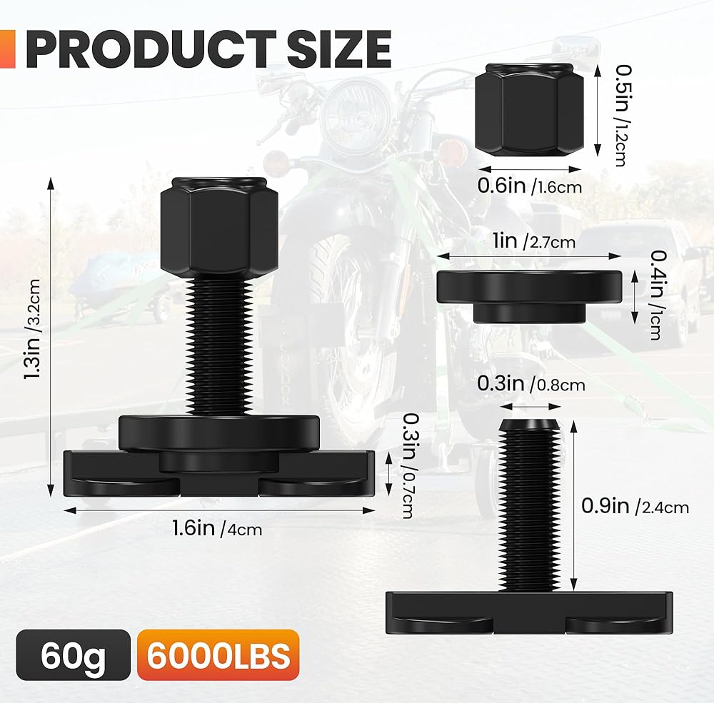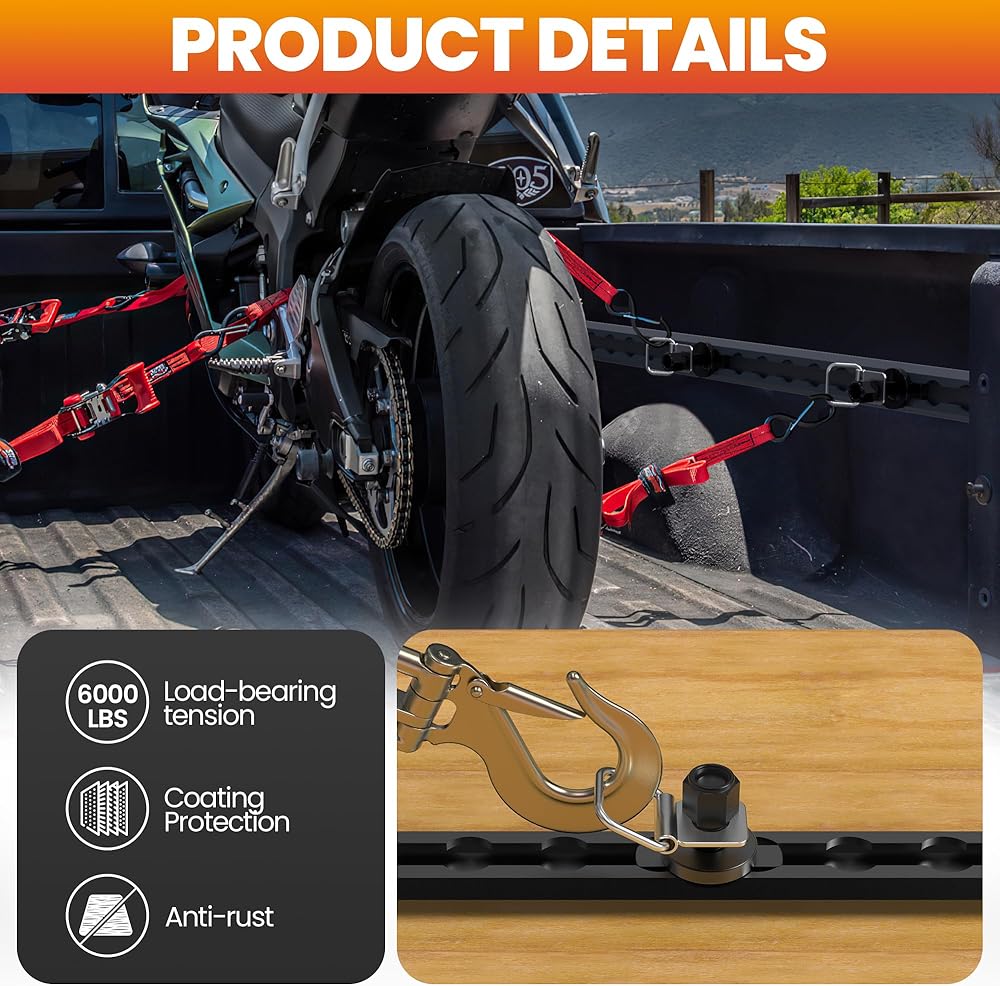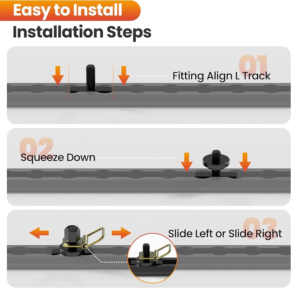 Versatility: Suitable for truck beds, trailers, motorcycles, pickups and all-terrain vehicles, L track tie down can be installed anywhere on the L-track to form a secure anchor point for connecting cargo straps to secure cargo.