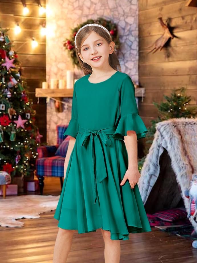 Features:Smooth and soft fabric make girls more cute, bell half sleeve, formal, wedding guest dresses for girls,sun dress, flowy, non see-through.This is a very elegant solid-colored dress
