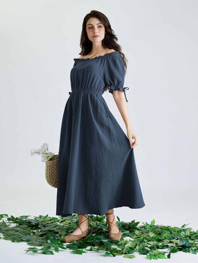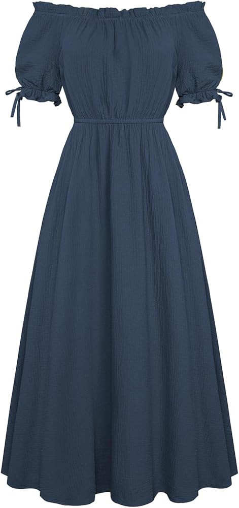 Elegant Design: Embrace the charm of the Renaissance with this beautifully crafted renaissance dress. This maxi dress can be worn off the shoulder or in a regular style, and the tie design at the cuffs adds a touch of elegance to the dress.