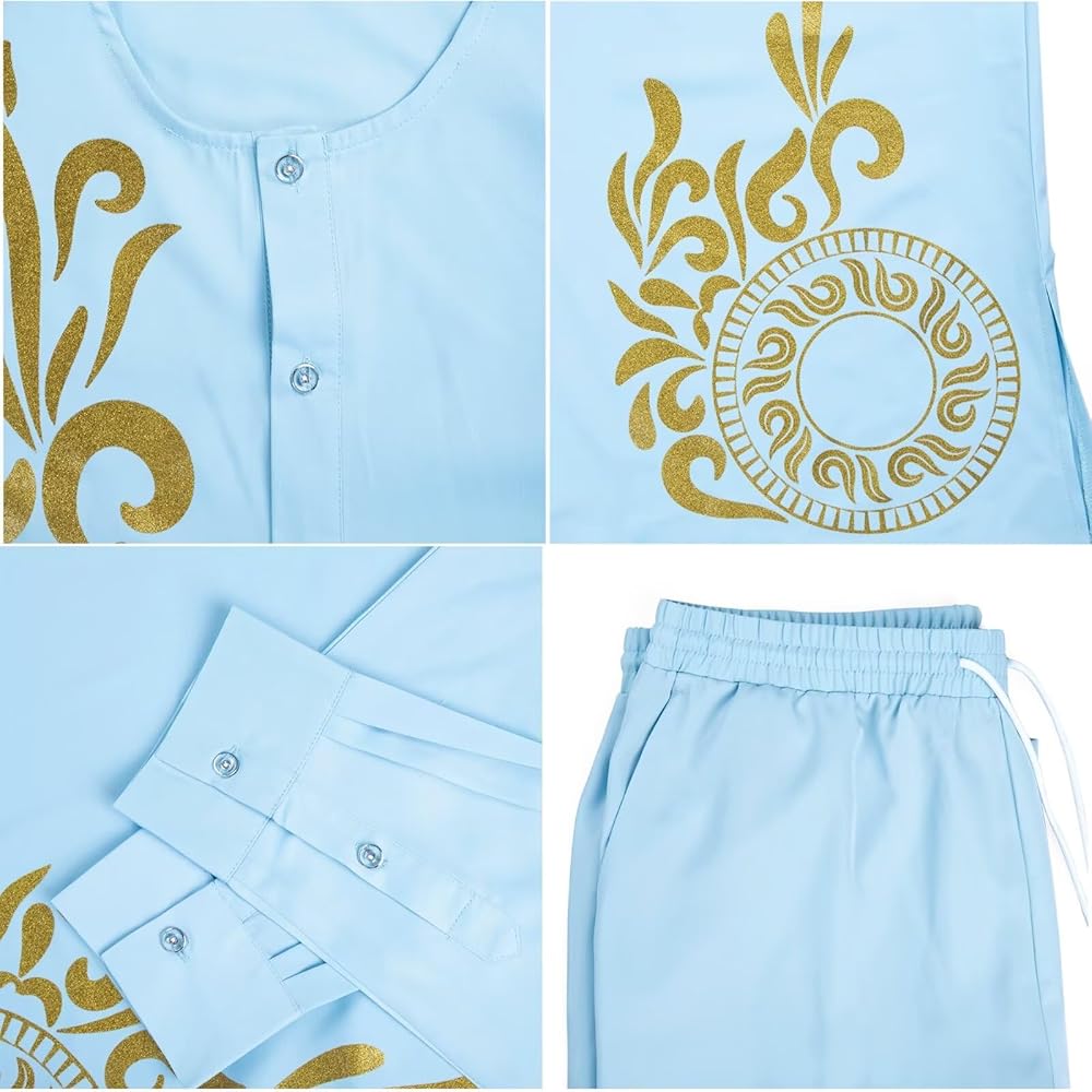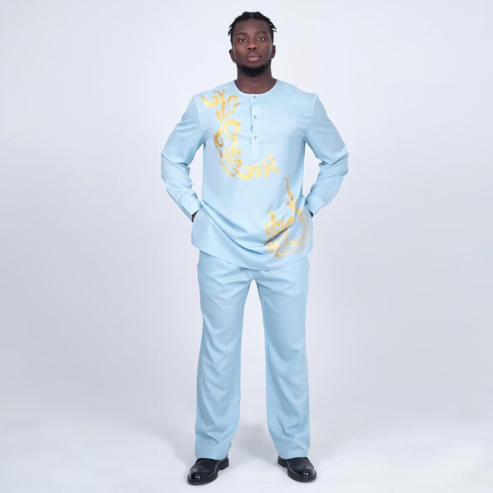 Unique features:Fashion african clothes for men 2 piece sets adopt gold and silver print craft and combine the characteristics of African traditional dashiki outfits,shown african men personal and fashion;it will make you look attractive and charm in the dashiki party,wedding and so on.