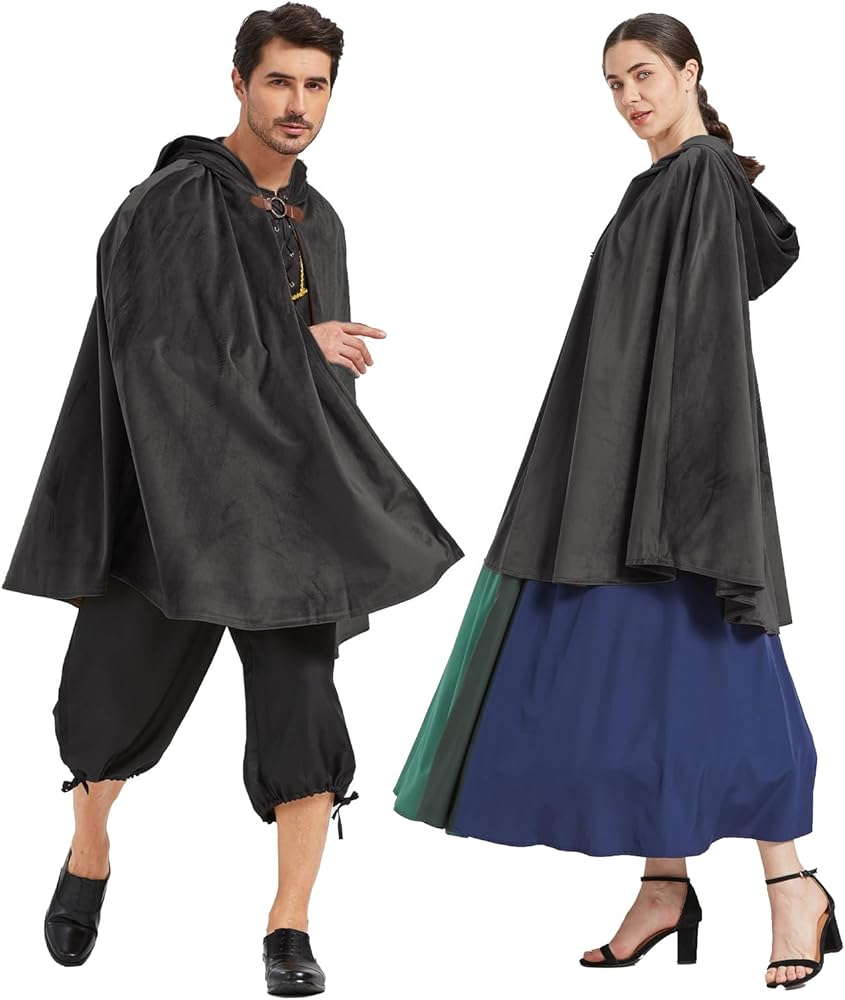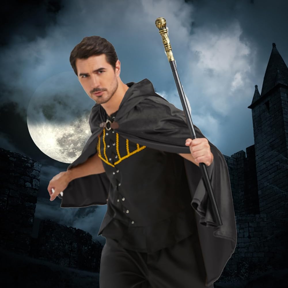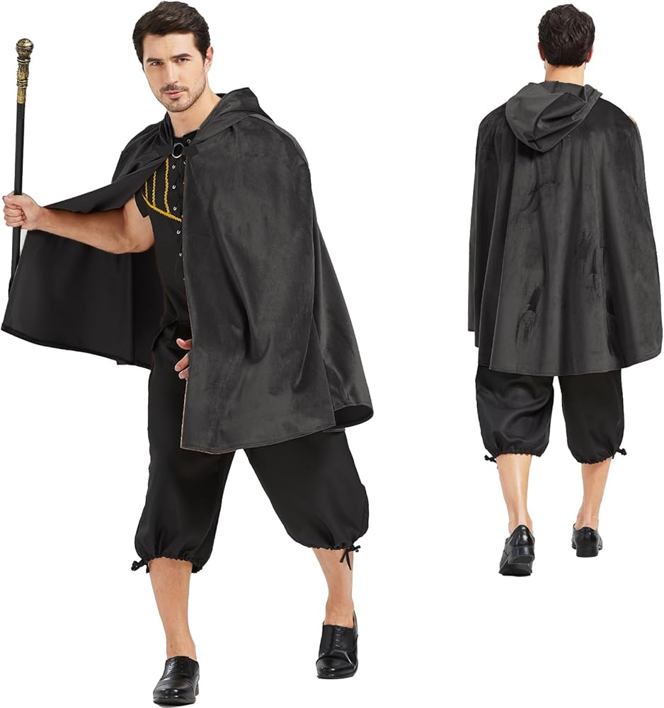 𝑹𝒆𝒏𝒂𝒊𝒔𝒔𝒂𝒏𝒄𝒆 𝑯𝒐𝒐𝒅𝒆𝒅 𝑪𝒂𝒑𝒆: Ourcloak with hood men available in two colors:black vintage cloak and brown vintage cloak,Is half-cloak not full-length cloak,Transform into a mysterious and powerful character with our renaissance hooded cloak, perfect for cosplay and costume parties.