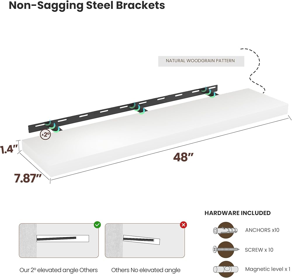 Versatile & Functional - Our Decorative shelf for wall Adds character to any modern, traditional, rustic, or farmhouse decor home & kitchen styles.These shelves for wall decor above a small desk in your guest room, desks, fireplaces, over toilet storage shelf,living room wall decor, corner bookshelf, bathroom decor, office wall decor,or vanities and so on. If you are seeking easy-to-install, stylish floating shelves to add a contemporary touch to your home, these shelves are an excellent choice.