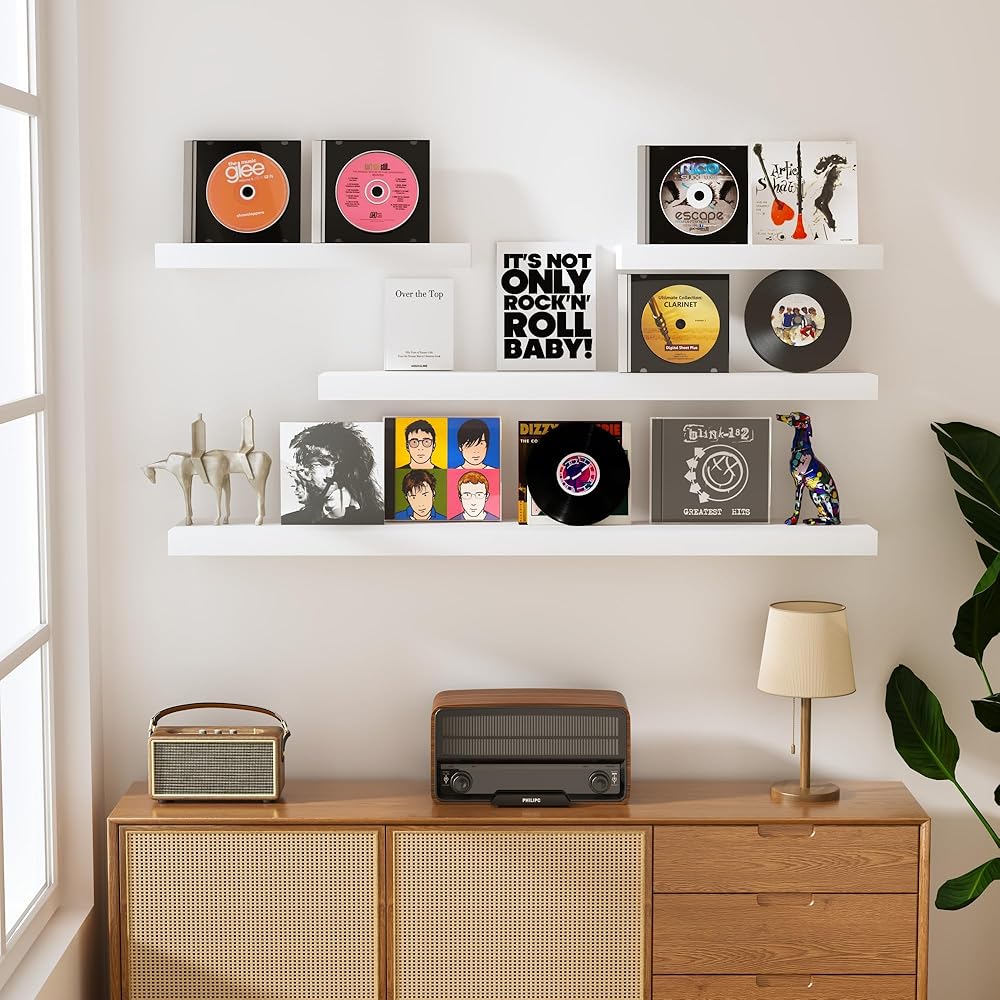 Extra Deeper & Thicker Wood Floating Shelves - Each wall shelf measures 24"W x 9.06"D x 1.5"H. Our shelves for wall decor create a variety of storage spaces to organize small items on your desktop or counter.and they blend seamlessly with the rest of other decor and provide a stylish way to organize and display items.It would highly recommend for succulents, small items, and collectibles, statues and trophies, or anything you would like to display