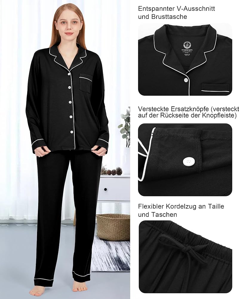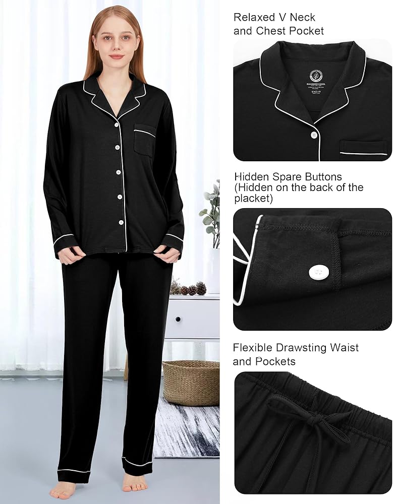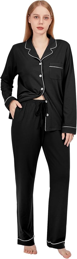 【ORGANIC CERTIFIED MATERIAL】- Our pajamas set for women are made of 65% viscose made from bamboo and 29% cotton and 6% spandex, which is skin friendly, health and feels as soft as skin. Organic fabrics can meet your high quality, high comfort wearing experience