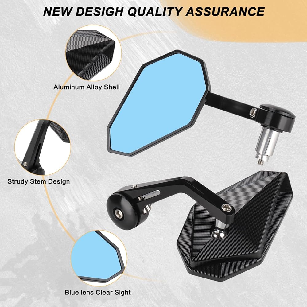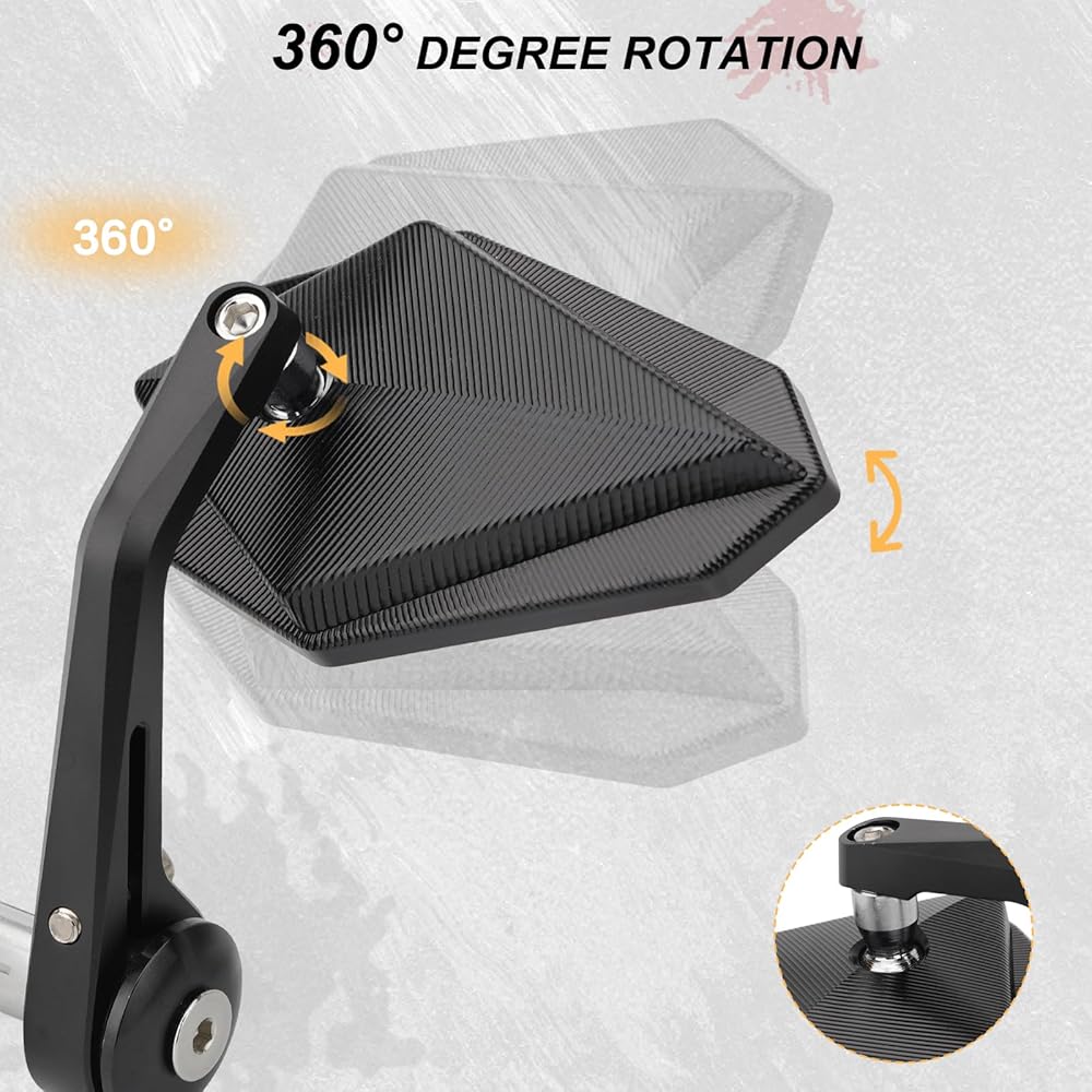 【Heavy Sturdy Material】Our upgraded handlebar side mirror is made of the matte coating of the CNC high-quality aluminum alloy shell housing that hardly drops and has a great quality feel. And the stem is so duty, durable and difficult to break off.