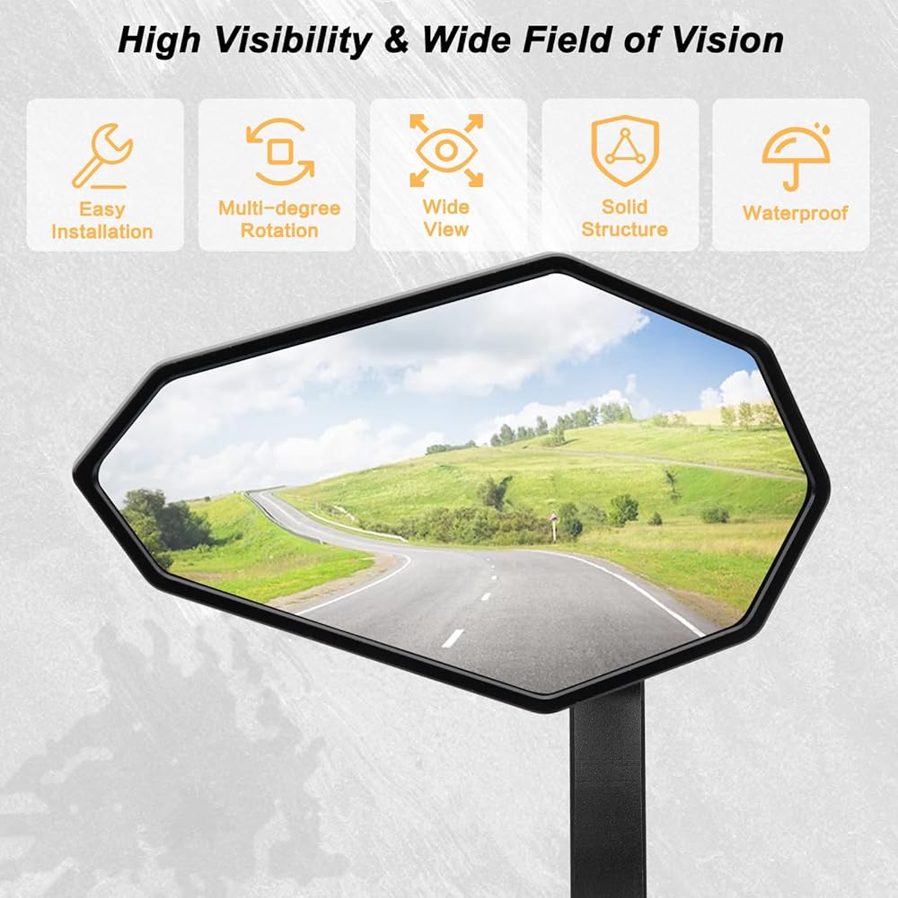 【360° Rotation Joint】The ball joint connects the mirror housing with a pole to provide 360° rotation and allows the lens housing to be freely adjusted up&down, left & right at the same time. It allows the driver to obtain a suitable driving field of vision by adjusting to the most ideal angle, improving driving safer.