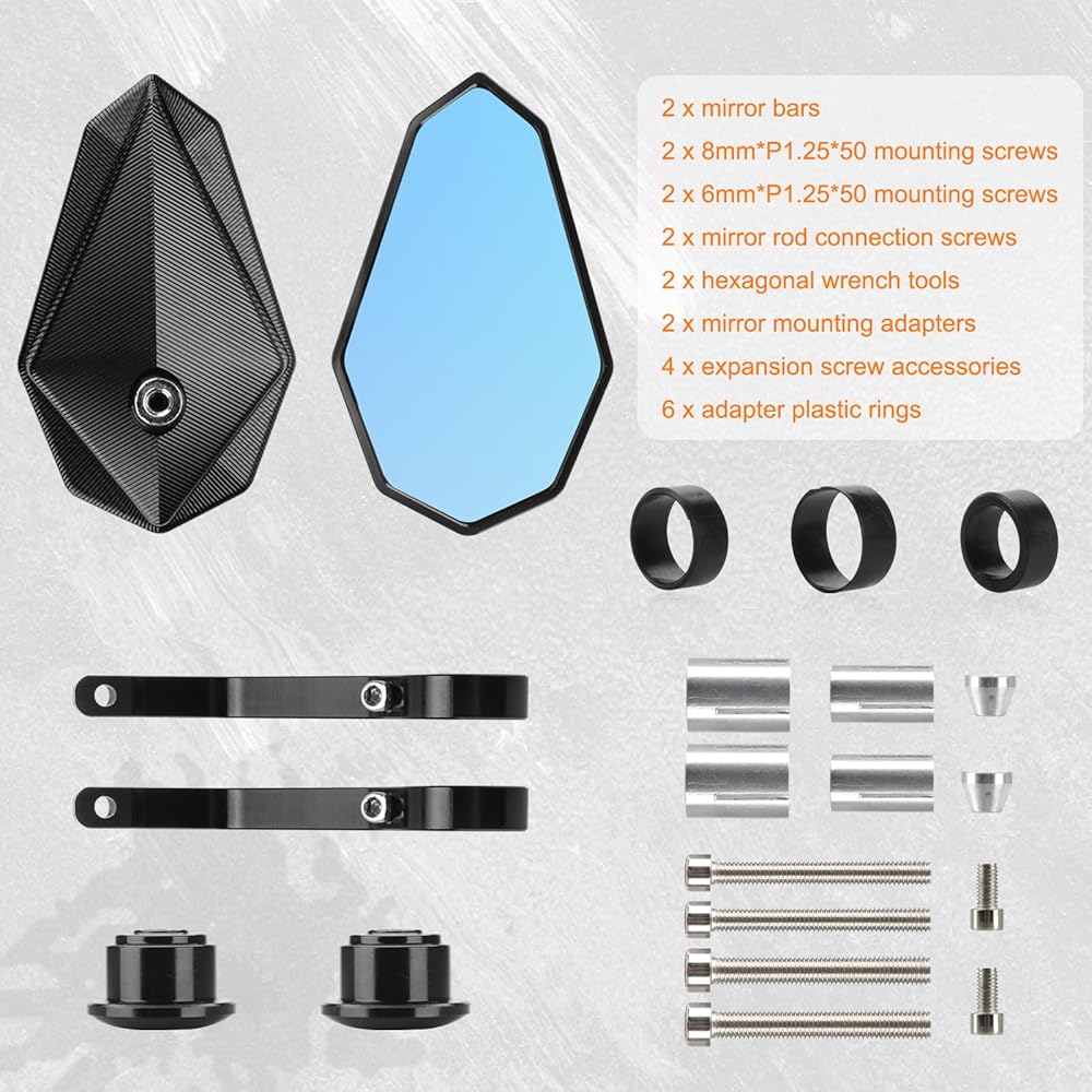 【Clear View】This universal anti-blue rear mirror features convex mirrors to provide a high-definition wide-angle clear view, facilitating the viewing of approaching vehicles and obstacles. Unique look with streamlined design, it has less wind drag than the old-fashioned clumsy mirror and makes your motorcycle stand out on the road.