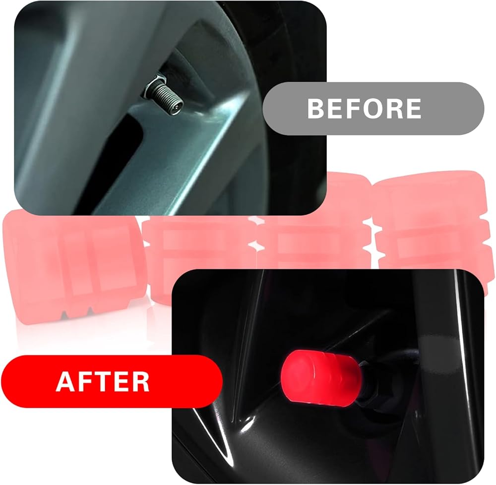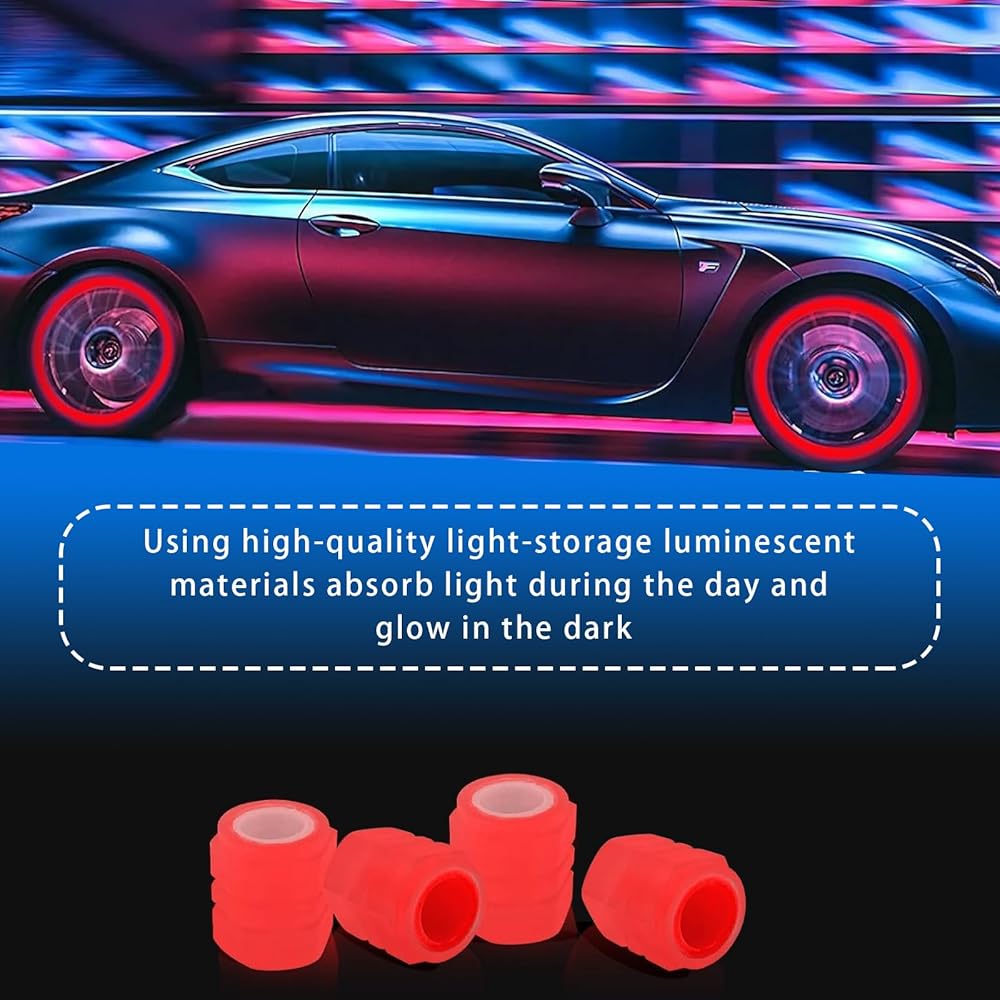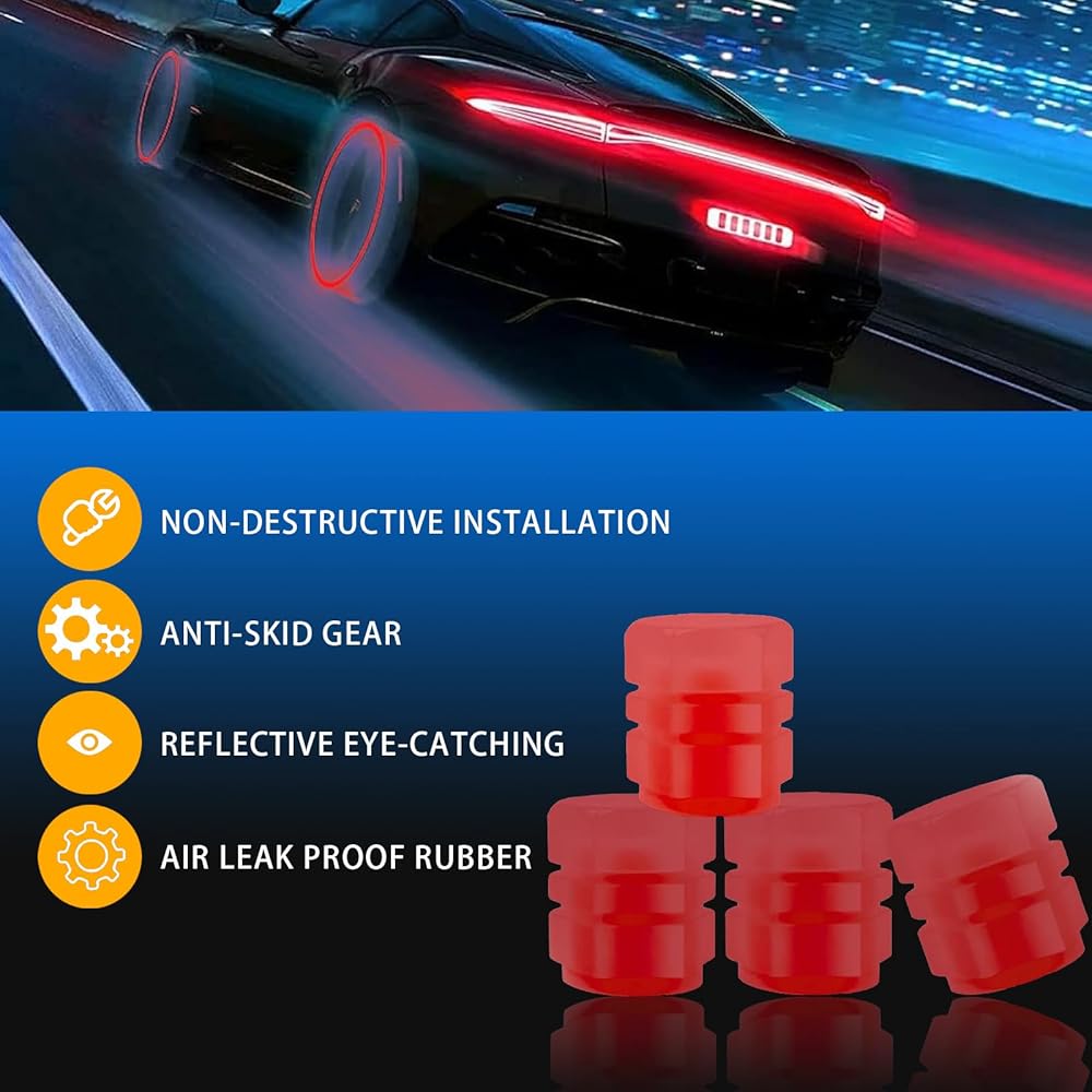 ijuicy 4 PCS Car Luminous Tire Valve Stem Caps, ABS Air Caps Cover Fluorescent Glow in The Dark Night, Reflective Anti-Leakage Rubber Ring Tire Valve for Most Cars (Red)