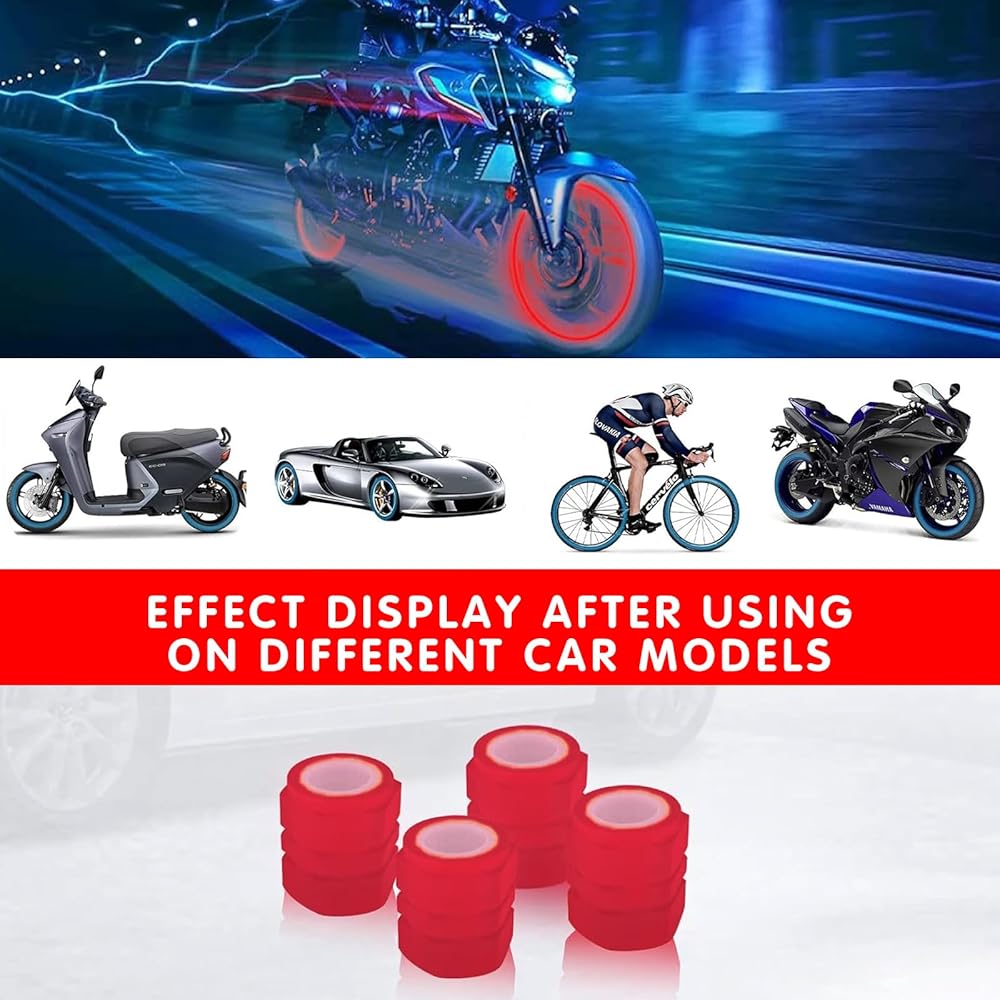 Packing List: You will receive four red car luminous tire valves. The product has a smooth surface without burrs and fine craftsmanship. The product is small and portable, so you can use it at any time.