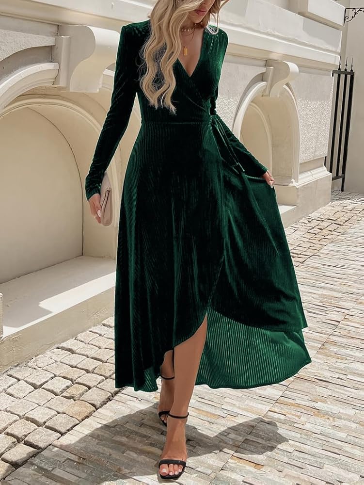 Introducing the BerryGo Velvet Wrap Dress, the perfect choice for any holiday occasion. This 50s-inspired dress features a flattering wrap design and a luxurious velvet fabric, making it a standout piece for winter weddings, cocktail parties, and Christmas celebrations. Whether you're a wedding guest or a bridesmaid, this long sleeve dress will make you feel elegant and stylish. Its versatile style also makes it suitable for rehearsal dinners and other festive events. Designed by Baltic Born, this dress is crafted with attention to detail, ensuring a perfect fit. With its flattering silhouette, it's also an ideal choice for those looking to hide their tummy. Embrace the season in style with the BerryGo Velvet Wrap Dress, the must-have dress for women during the holiday season.