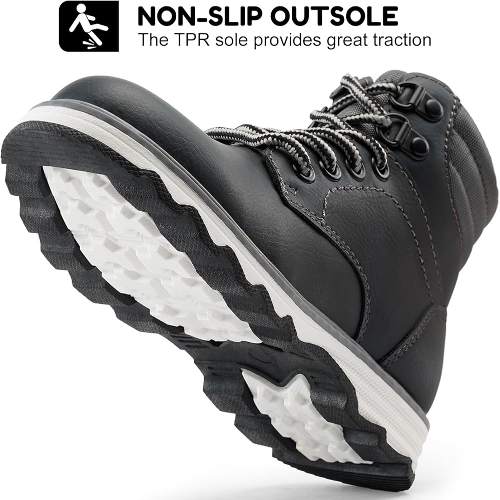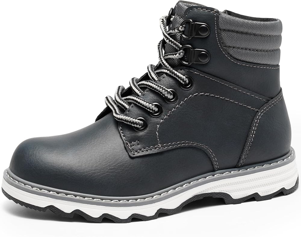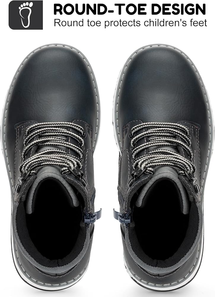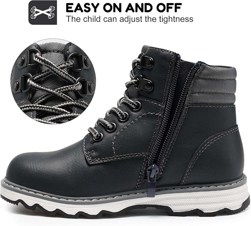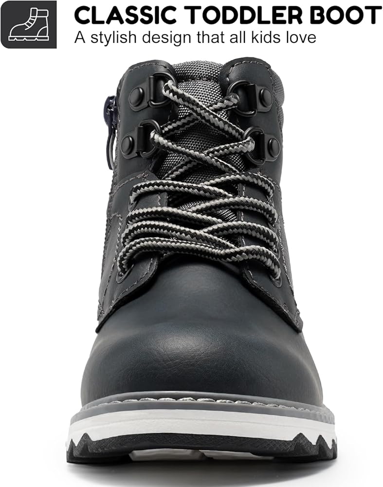 This boys' winter ankle boot is a classic workwear style with different contrasting colors