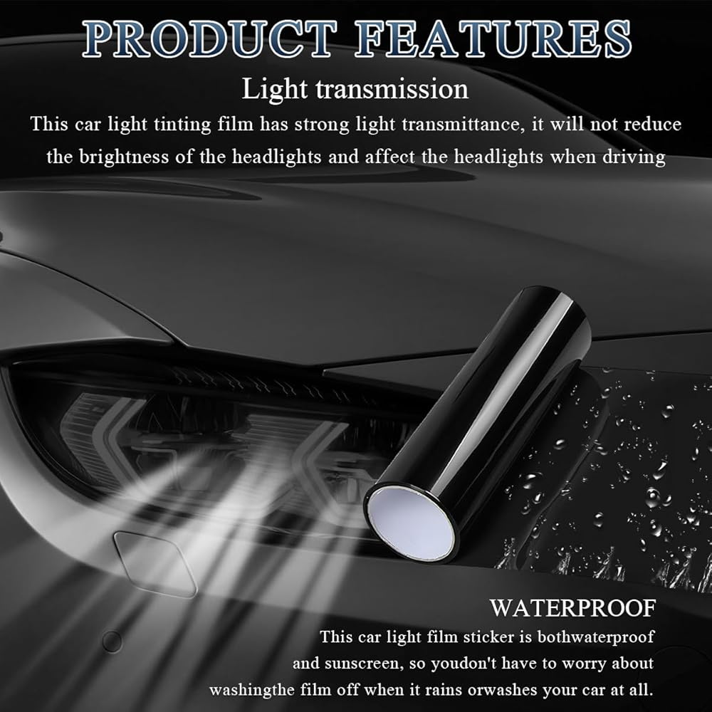 【Wide Application】: Measuring 11.8" × 47.2", this film is versatile and can be precisely cut to fit any shape required for headlights, taillights, or other automotive lights. This adaptability ensures a wonderful fit for various light configurations, allowing for a tailored application.