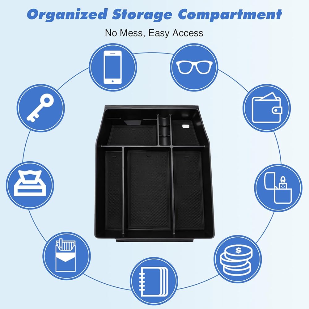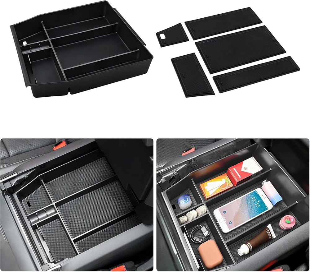 Specific Fit: Custom-designed for Ford F-150 2021 - 2025, this center console organizer tray fits perfectly in your F150's armrest console. It maximizes storage space, keeping all your essentials within easy reach. No modifications needed—just a hassle-free, snug fit. (Note: Fits bucket seat consoles only, not jump seat consoles.)