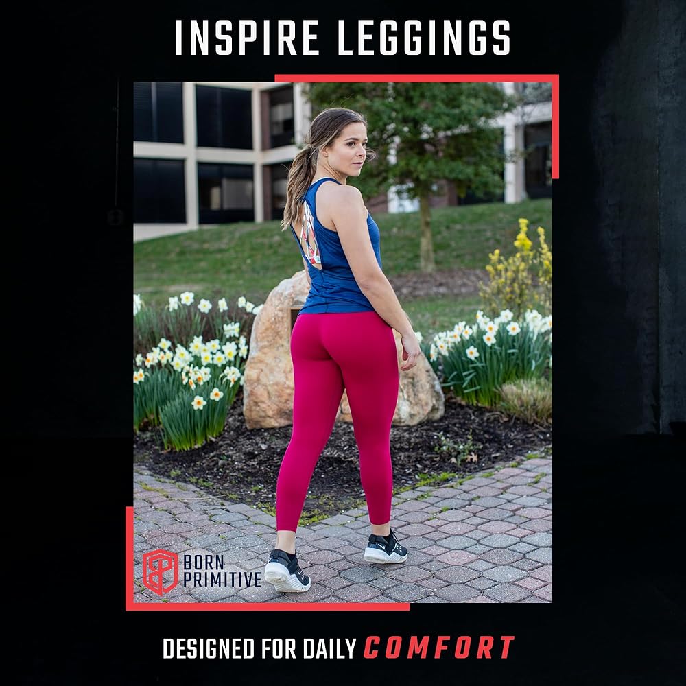 INSPIRE LEGGINGS: Buttery soft against the skin, our Inspire leggings for women have amazing 4-way stretch that makes them ideal for any activity, from yoga to gym workouts, trail runs and more. You can bend, squat and stretch your legs as far you like – these leggings will stay with you every step of the way. And with the wide, high waist that we all love, these workout leggings keep you covered and even provide a little tummy control. The 7/8 length form fitting athletic leggings have the same great design as our Your Go To leggings for women, but are made from a buttery soft material that moves with your body as you work towards your targets. Made from 70% Nylon with 30% Spandex with a wide waist band, these high waisted leggings will MEASURE smaller than our Staple, Lift Yourself and Rise and Grind women's leggings because they are a completely different material. However, we recommend ordering the same size in these as you do in the other styles! Our comfortable leggings and yoga pants are also easy to care for – just machine wash with like colors on cold and line dry. Born Primitive provide athletes with the apparel they need to pursue their passion unencumbered by offering the unparalleled comfort and functionality that the best demand. We use our words, actions, and resources to support the troops and first responders who inspire us, and inspire the Born Primitive community to relentlessly pursue their dreams.