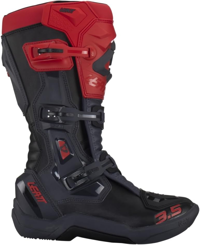 The all new Leatt 3.5 boot could just be what you have been looking for!Great design, comfortable and safe at a price point that is hard to beat. We have included the amazing SlideLock closure system as used on both the 4.5 and 5.5 FlexLock boots along with the extended foot peg riding zone for those that like to ride on the toes.A low-profile toe box means easy gear changing and soft padding wraps inside the ankle area ensures comfort and safety is achieved. If you are looking for the next model up in the Leatt boot range, check out the Leatt 4.5 or 5.5 FlexLock.