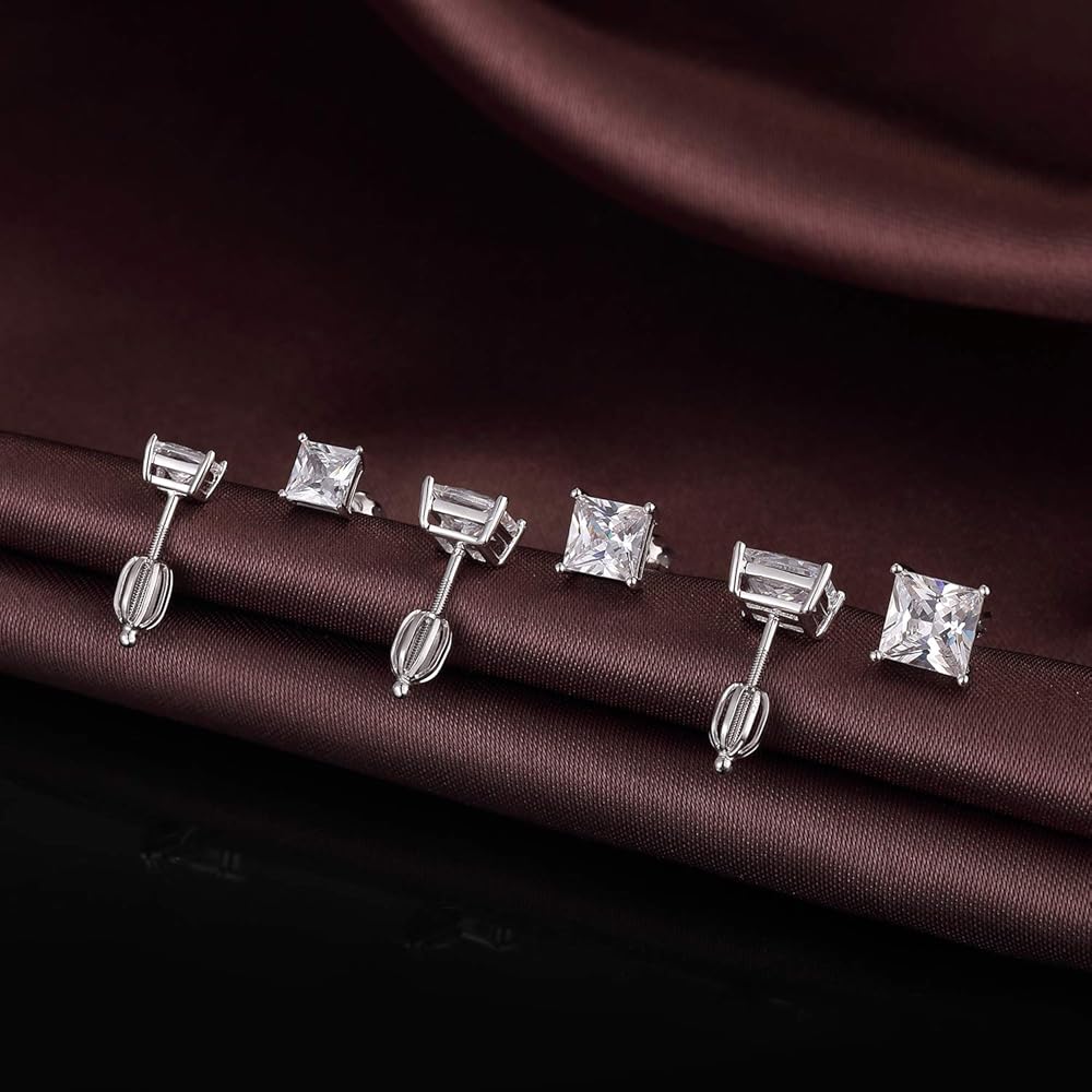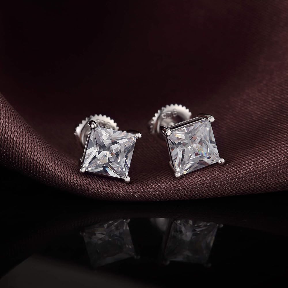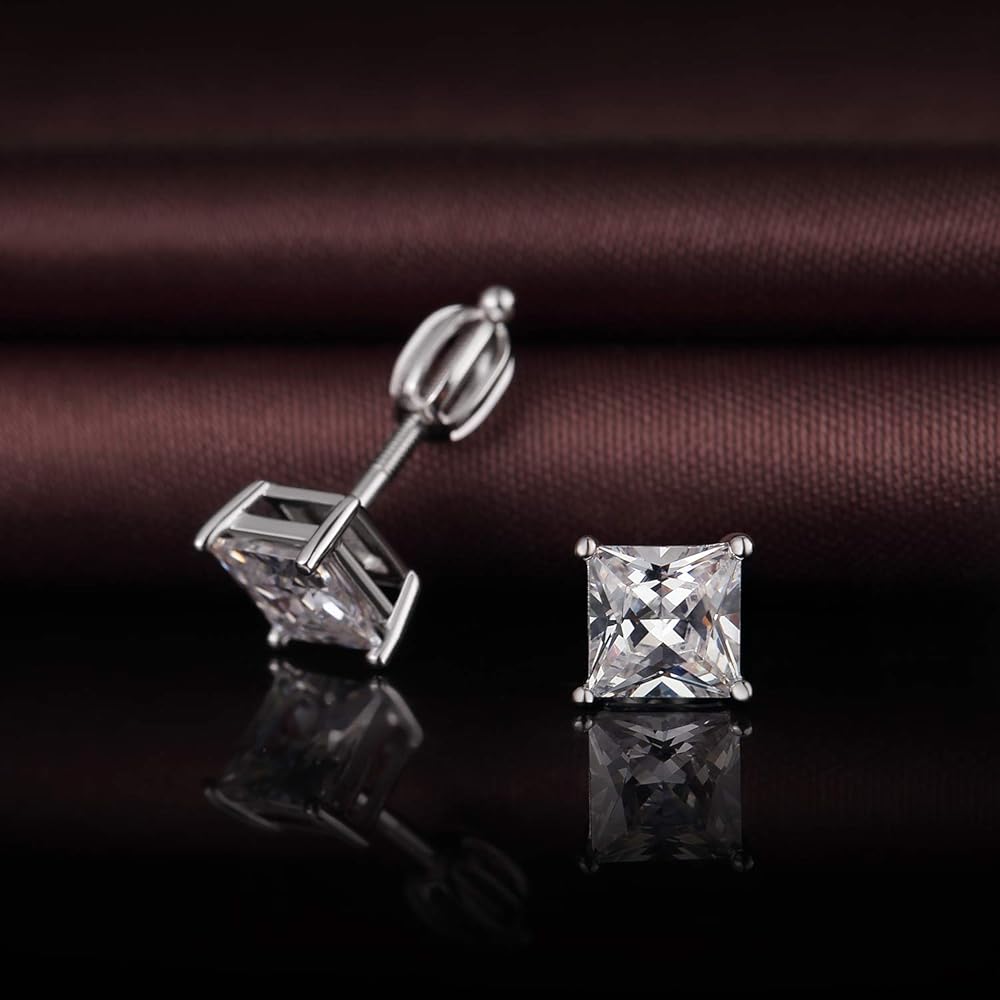 ❤.【Screw on Earrings】Dimension Available: From 4mm to 8mm. 18K White Gold Plated Sparkling Simulated Diamond Stud Earrings with Screw Backs. Princess Cut Top 4A+ Quality Cubic Zirconia, Sparkle and Looks Like The Real Luxurious Diamond Earrings.