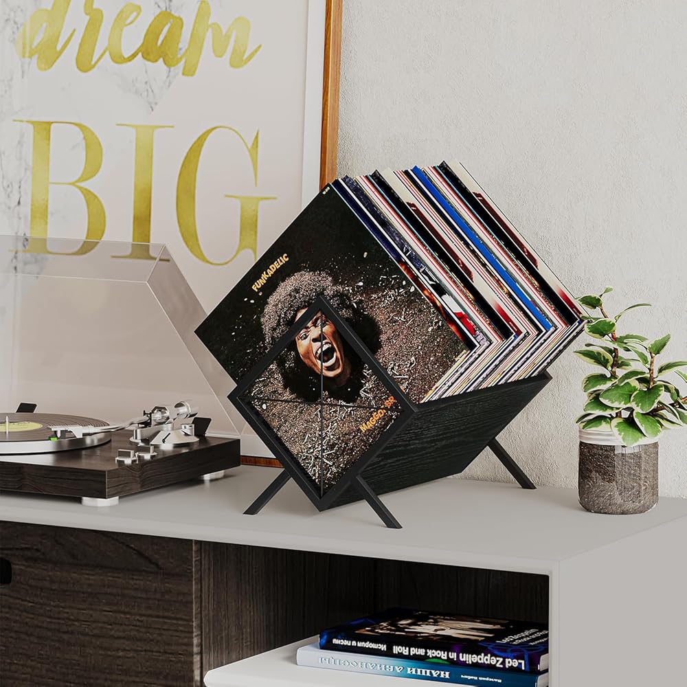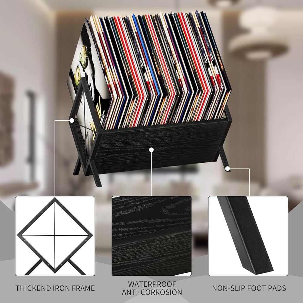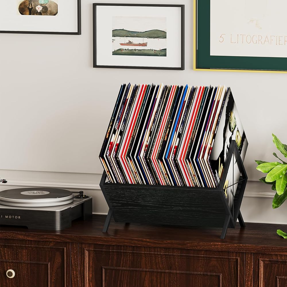 Versatility:Besides being a records organizer,this product can also be used as a display stand for your favourite books,magazines,and artwork.In this way,it is a place to store records and a beautiful art display area,adding a touch of style and beauty to your home.