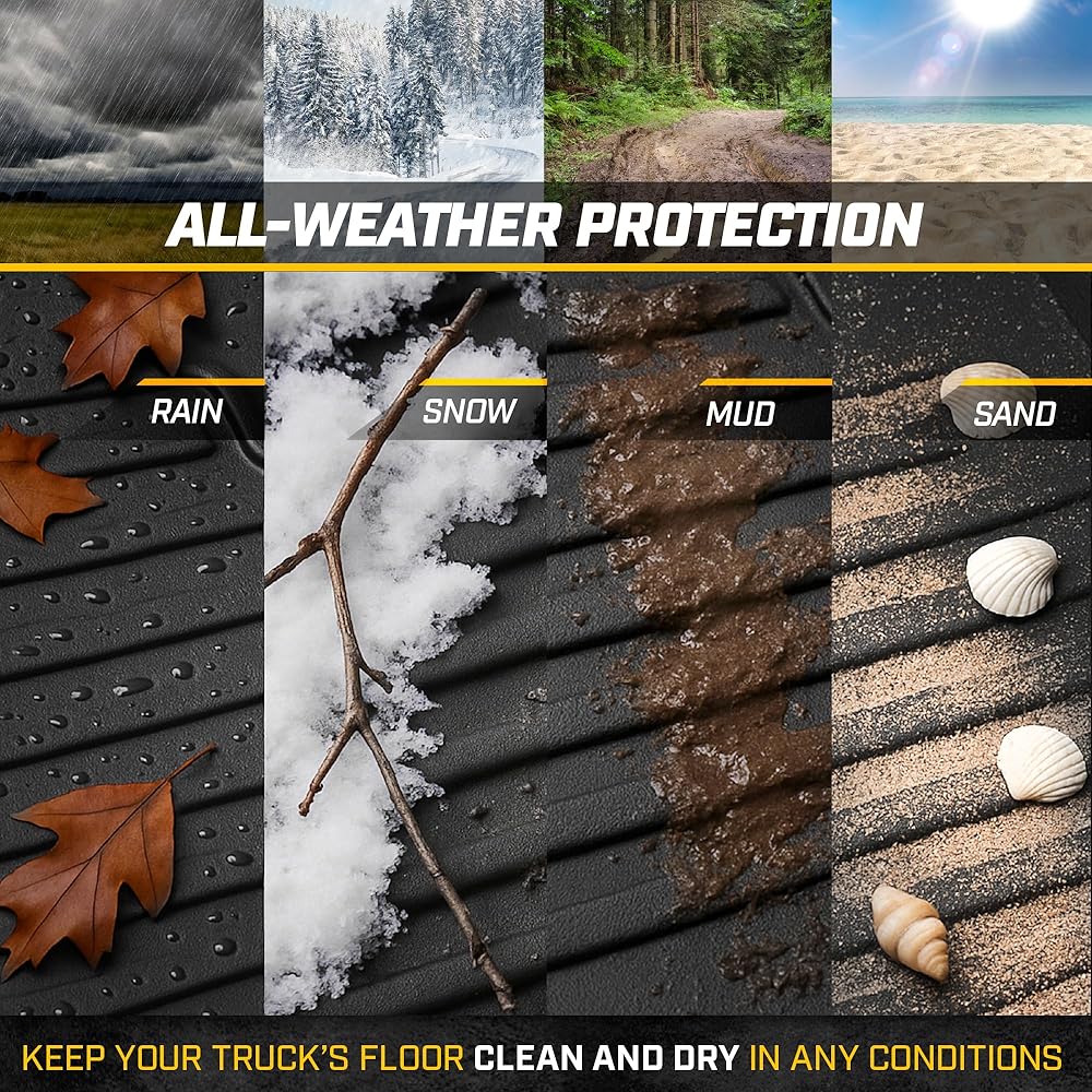 ALL-WEATHER PROTECTION: Built to withstand rain, snow, mud, and spills. Raised edges keep dirt and moisture contained, protecting your vehicle's interior in any weather.