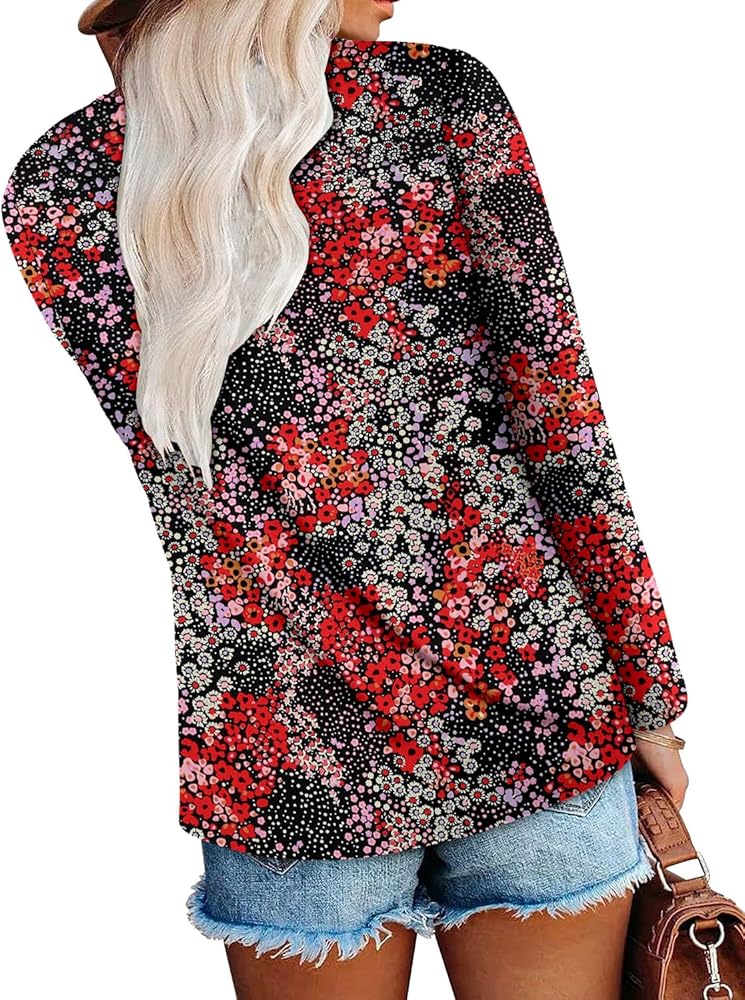 Features: Long Sleeve Tops for Women V Neck with Pleated Design,Solid Color and Floral Print, Cute and Comfortable