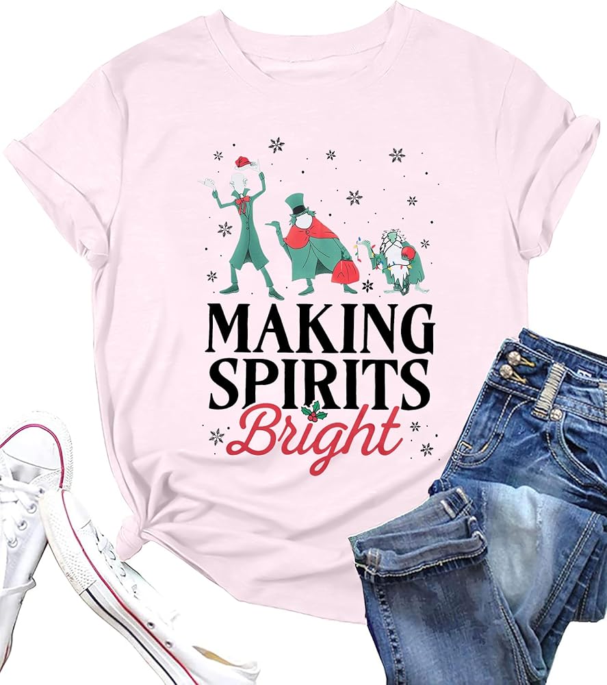 SOFT MATERIALS: Made with comfortable material and short sleeves, the "making spirits bright" top is perfect for the holiday season.
