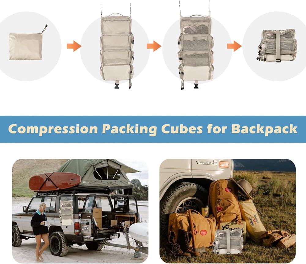 Versatile: The hanging packing cubes are ideal for travelling, hiking, camping, and business trips, simplifying your journey. They're also perfect for camper vans, RVs and bathrooms or closets in apartments and hotels.