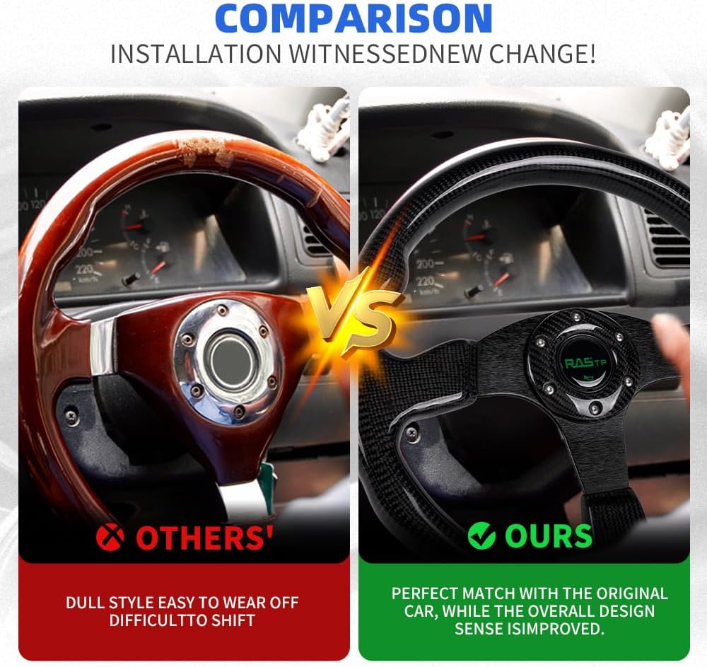 Universal Application - This Carbon Fiber steering wheel is compatible with most standard hub adapter, universal for most vehicle, racing car.(TIPS: Hub adapter is NOT included, Before installation,please choose a Steering Wheel Hub Adapter that fits your car model)