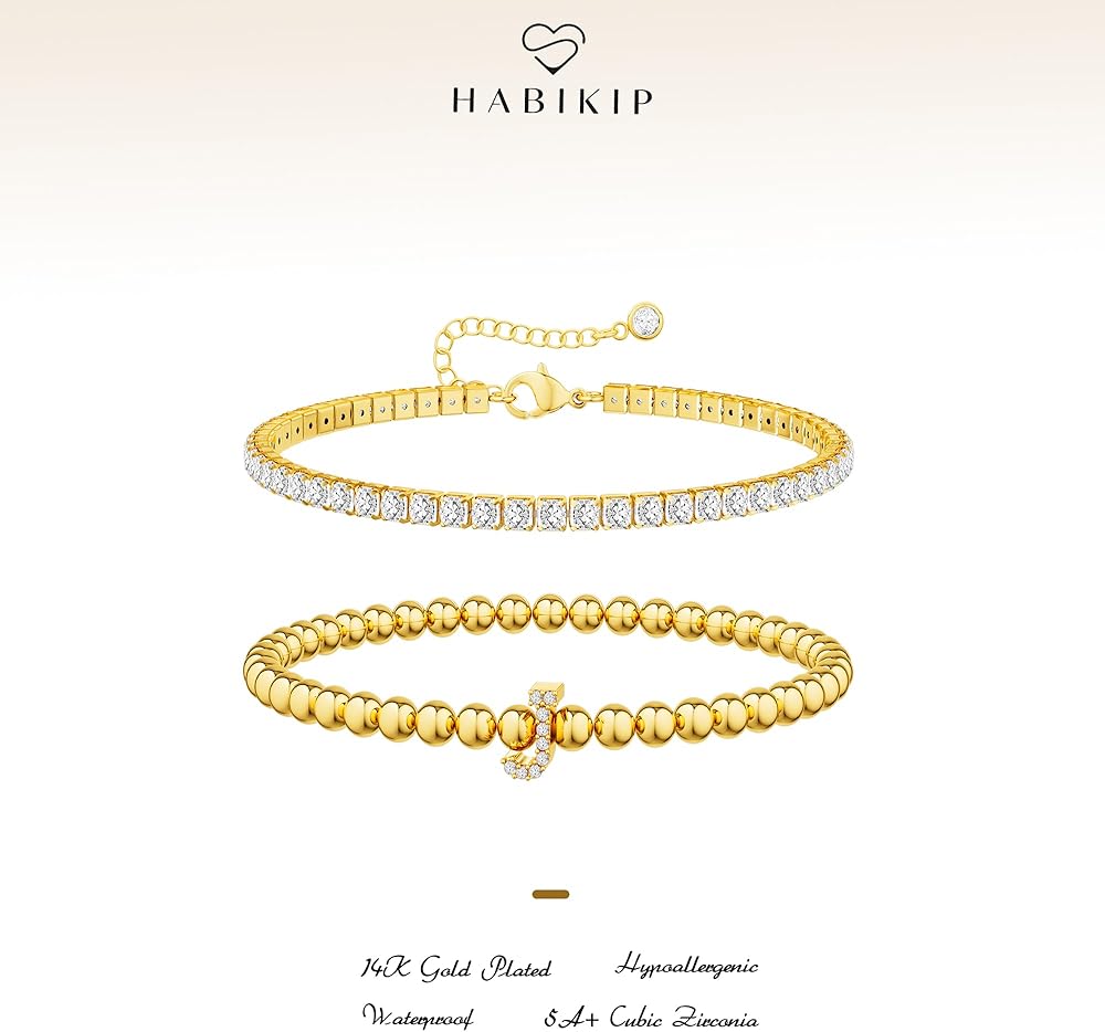 HABIKIP Tennis and Beaded Initial Bracelet – a sophisticated fusion of style and grace that effortlessly complements any attire. With its minimalist design, it's a great jewelry to elevate your look with a touch of contemporary flair