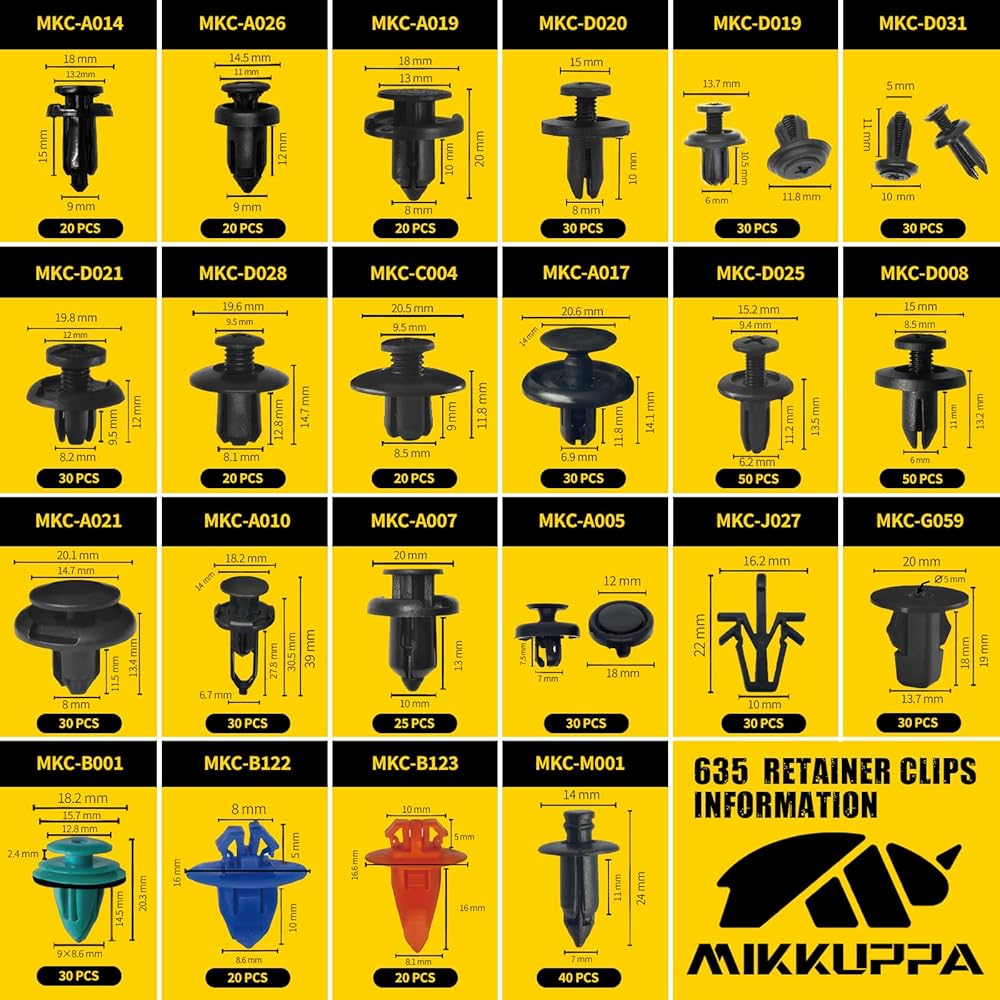 Durable and Reliable: Made from premium anti-wear, anti-corrosion nylon, MIKKUPPA clips resist breaking or cracking, ensuring long-lasting performance for your car's trim panels, bumpers, fenders, and more