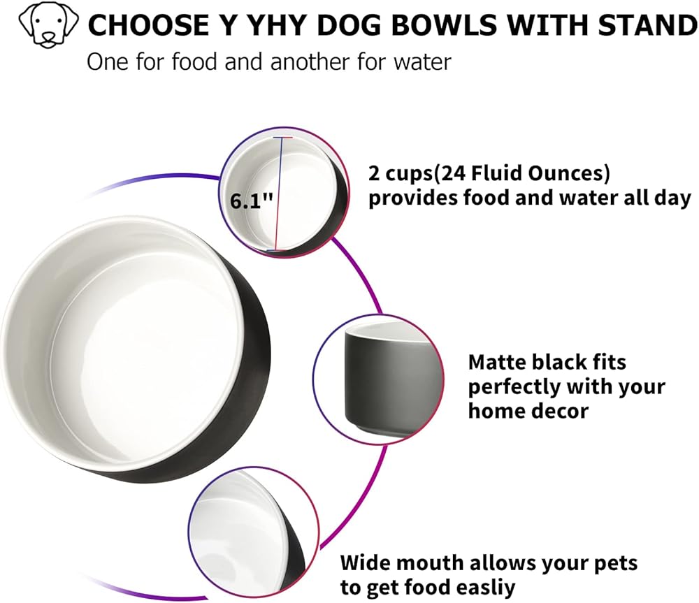 Cats and Dogs Feeding Bowl Set: 2 cups(6.1"*2.7", 24 Fluid Ounces) capacity of every single bowl, perfect for different breeds of small & medium size dogs and cats