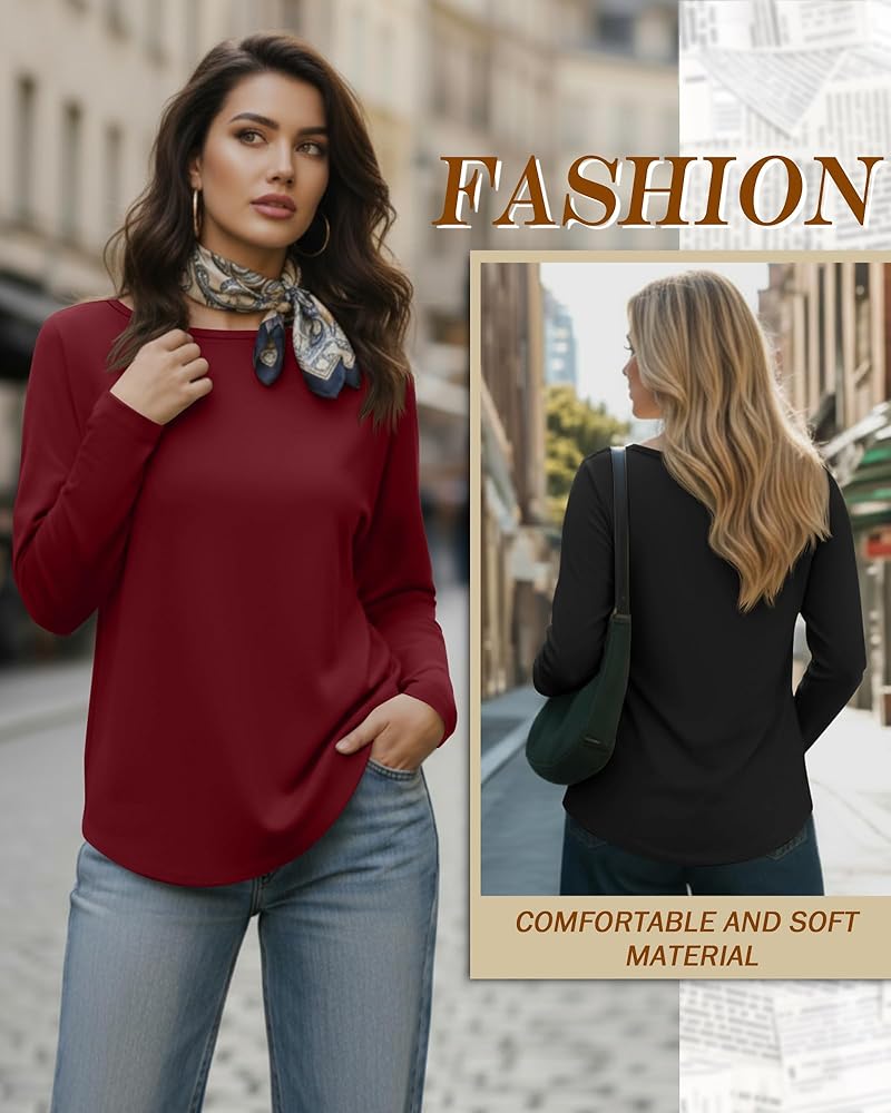 Boat Neck Loose Curved Hem Design: our loose women's long sleeved shirts feature a boat neck design to highlight your elegant neck, long sleeves can cover the fat of your arms, and the curved hem design can modify your waist and hip lines, making your figure look slimmer; The curved hem tops are suitable for various occasions, increasing the diversity of clothing matching, and the loose version can make you more comfortable to wear