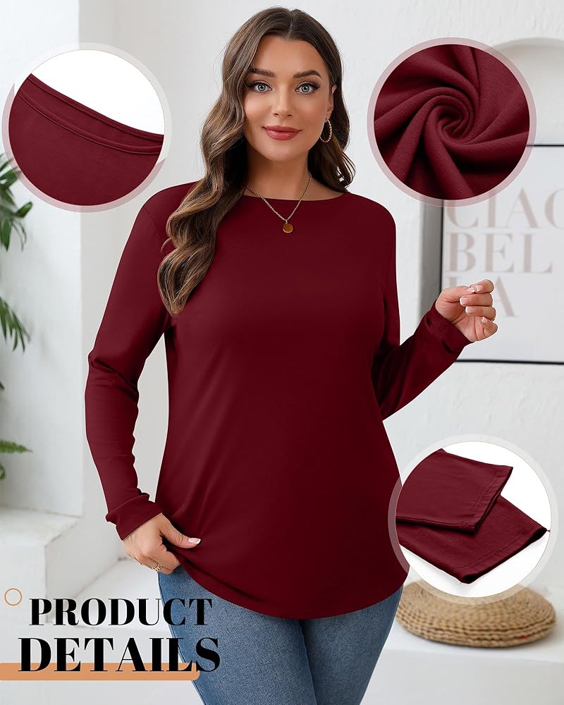 Comfortable and Soft Material: the plus size long sleeve tops for women are made of 60% polyester, 35% rayon, and 5% spandex; The fabric is skin friendly and elastic, shrinkage resistant, sweat absorbent, breathable, and does not fade; The fabric is washable, and this boat neck t shirt for women is a good choice for your wardrobe