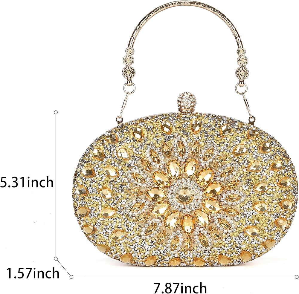 ❥ [Rhinestone Purse With Sufficient Capacity] The evening clutch purse external dimensions: 7.9"(L) x 5.4"(H) x 2.4"(W), Internal dimensions:7.2"(L) x 4.7"(H) x 2"(W). Weight:0.9 LB. This women diamond evening bags can easily accommodate your mobile phone, cosmetics, lipstick, wallet, passport, credit card and any small necessities.