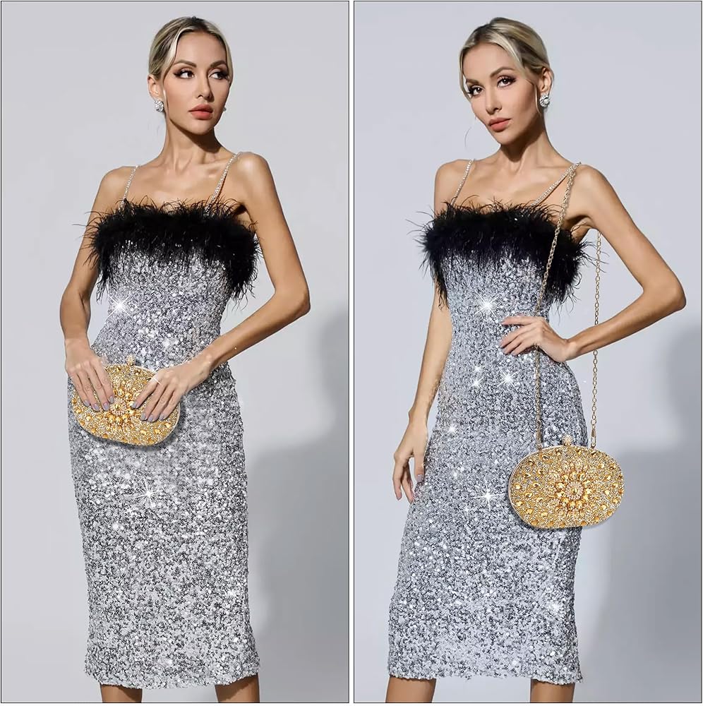 ❥ [The Best Choice For Gifts] This women diamond evening bags interior space can fit IPHONE 13 pro max.Light and easy-carried.Perfect for wedding party, family reunion, banquet ,prom and evening cocktail party and so on.It will be a surprising gift to family, lover, friends.