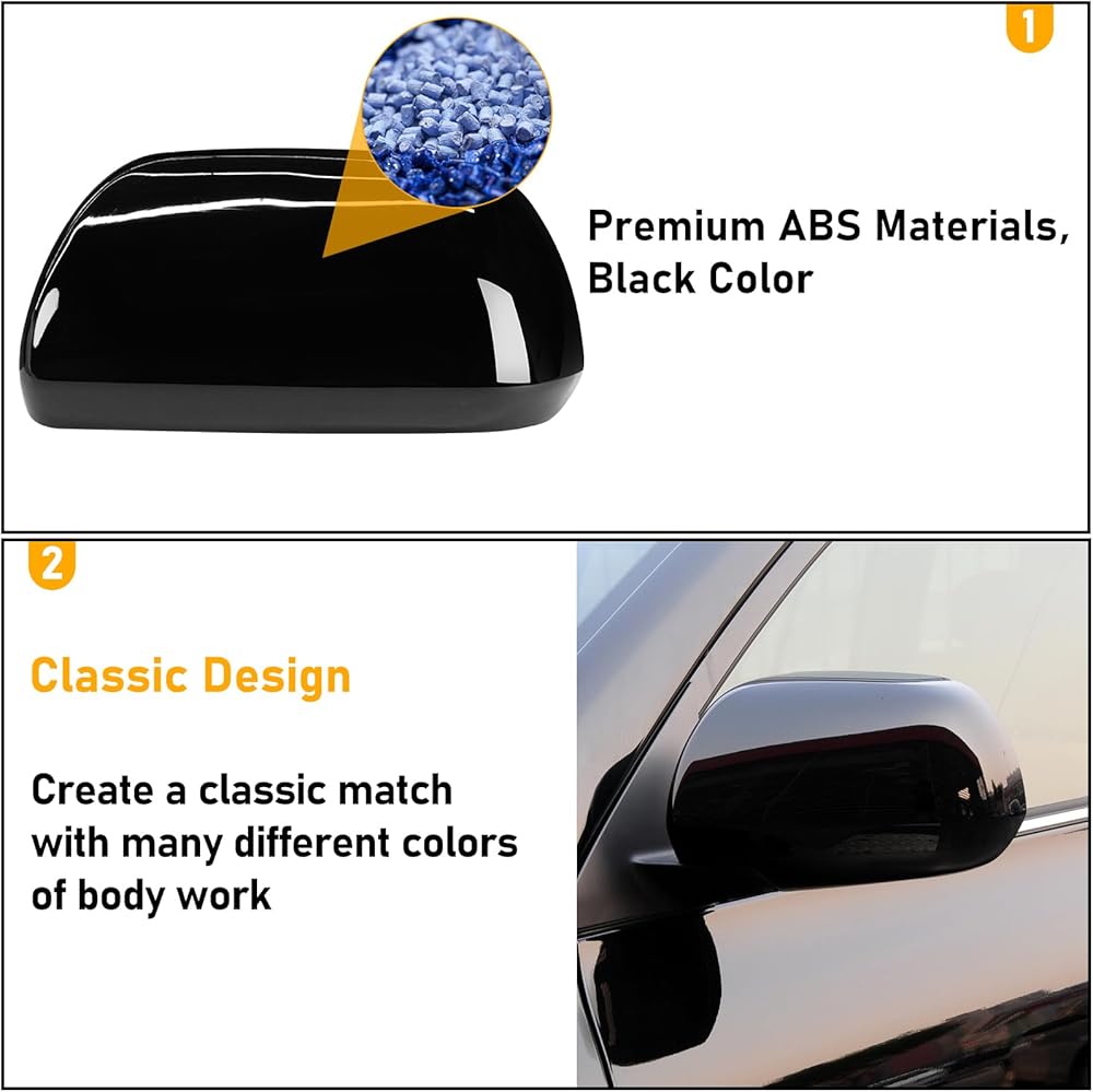 Moonlinks Compatible with Toyota Highlander 2009 2010 2011 2012 2013 2014 Left Side Mirror Cover Replacement, Glossy Black Left Driver Side Door Rearview Mirror Cap Trim