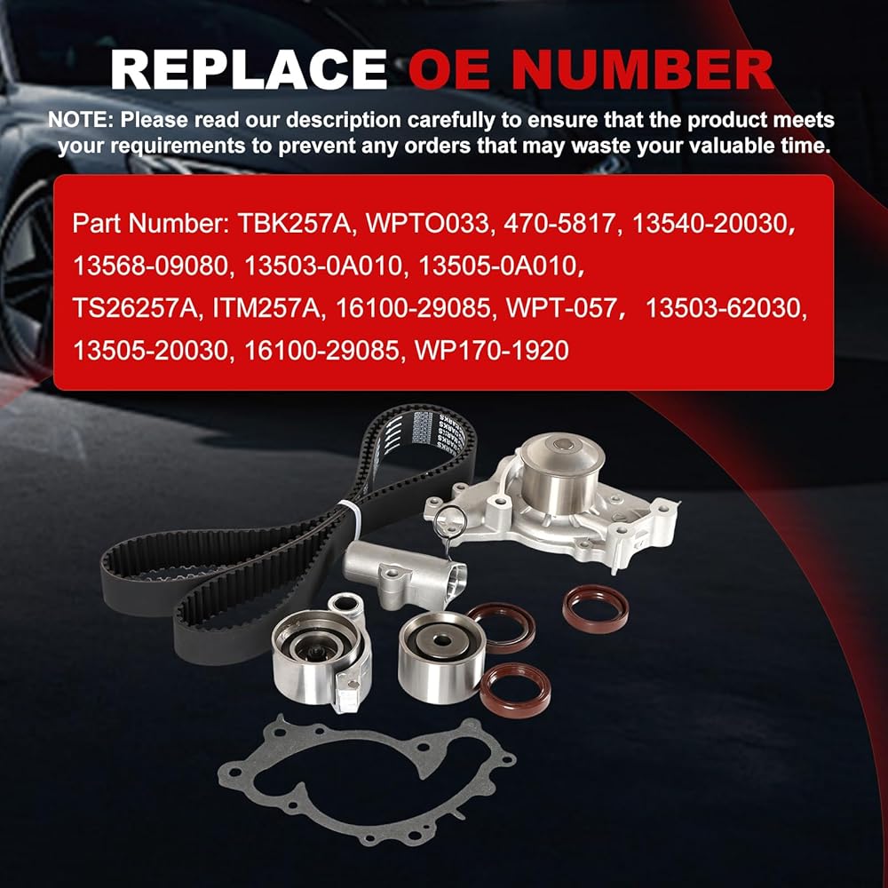 【OE Part Numbers Replaced】: Car Replacement Parts directly replaces crucial components like TBK257A, WPTO033, 470-5817, 13540-20030, 13568-09080, 13503-0A010, and 13505-0A010, offering a straightforward swap for worn-out parts.