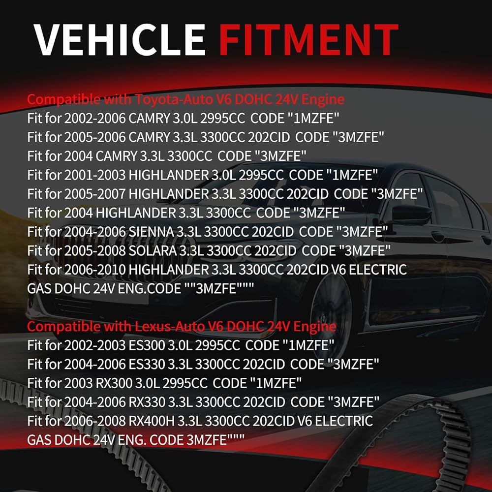 【Vehicle Compatibility】: Autodevil Engine Timing Chain Set specifically tailored to fit for Camry 2002-2006 3.0L, 2005-2006 3.3L; Fit for Highlander 2001-2003 3.0L, 2005-2007 3.3L; Fit for Sienna 2004-2006 3.3L; Fit for Solara 2005-2008 3.3L; Fit for Highlander 2006-2010 3.3L; Fit for ES300 2002-2003 3.0L, ES330 2004-2006 3.3L; Fit for RX300 2003 3.0L, RX330 2004-2006 3.3L. ensuring seamless integration and optimal performance.