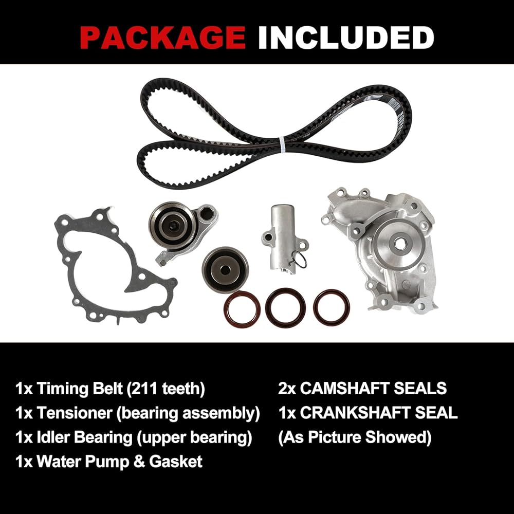 Timing Belt Kit Water Pump 3.0L 3.3L Fit for Camry 2001-2006 for Highlander 2001-2007 ES300 2002-2006, 3.3L for Sienna 2004-2006 Solara 2004-2008 RX330 2004-2006 with Tensioner Upper Bearing