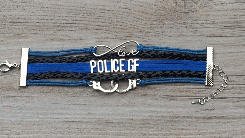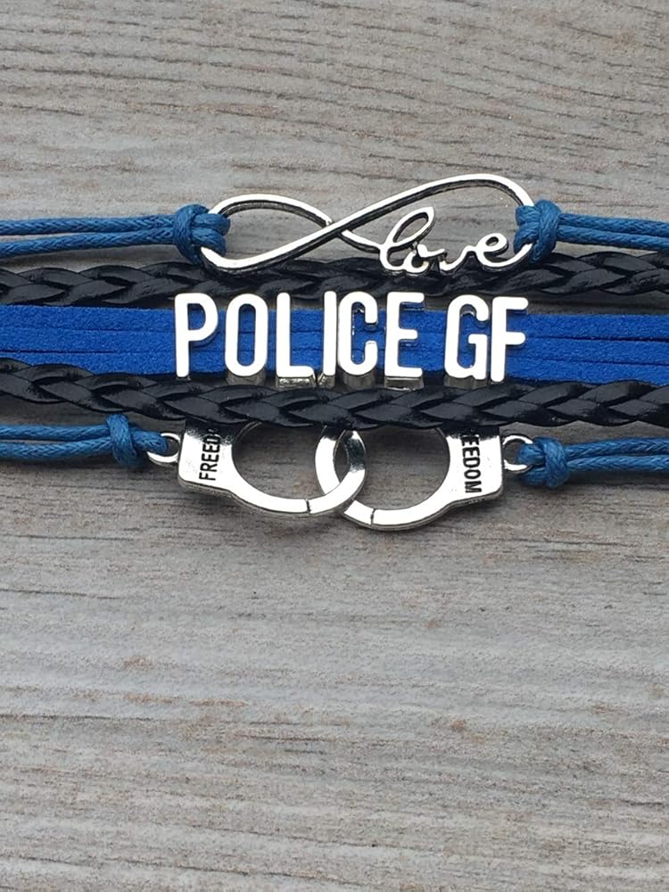 Police Girlfriend Bracelet – Thin Blue Line Infinity Love Charm Jewelry with Handcuffs | Police Officer Girlfriend Gift, Law Enforcement Support, Police Pride Adjustable Braid Bracelet