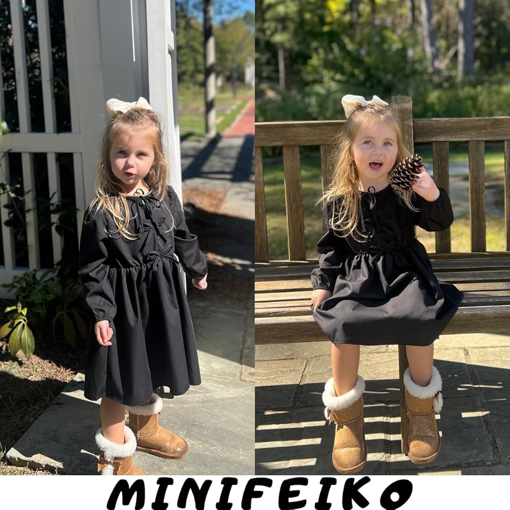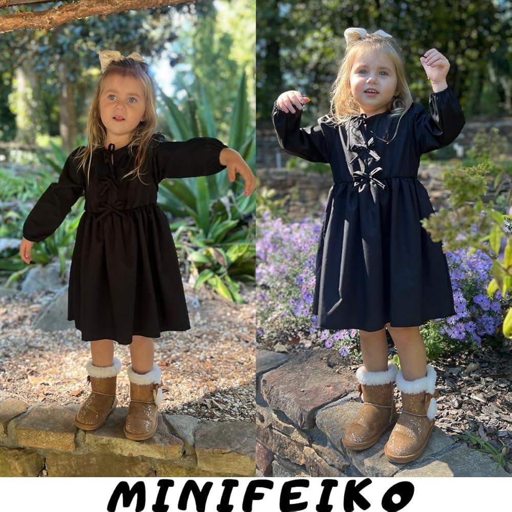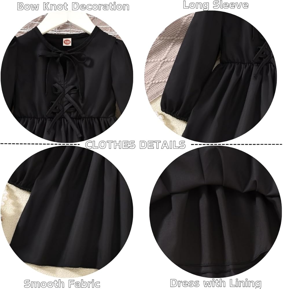 Elegant and Fashion: Elevate your girls fall style with this gorgeous long sleeve dress featuring an special front bows design that is both stylish and cute