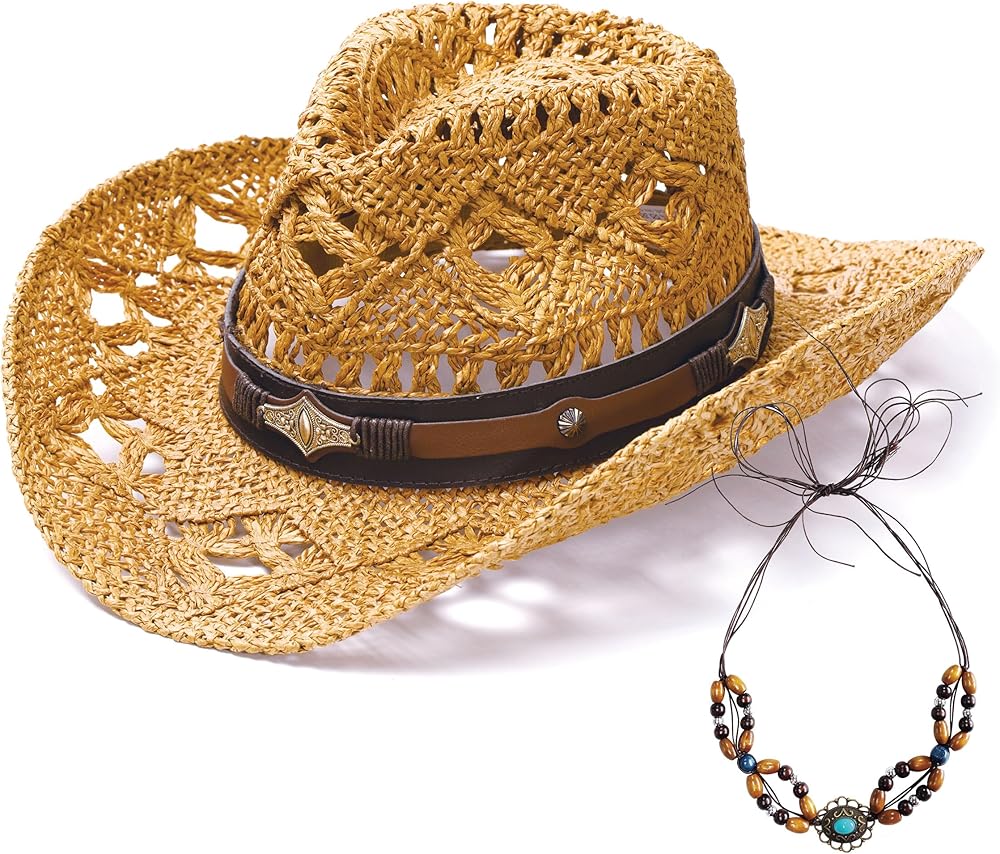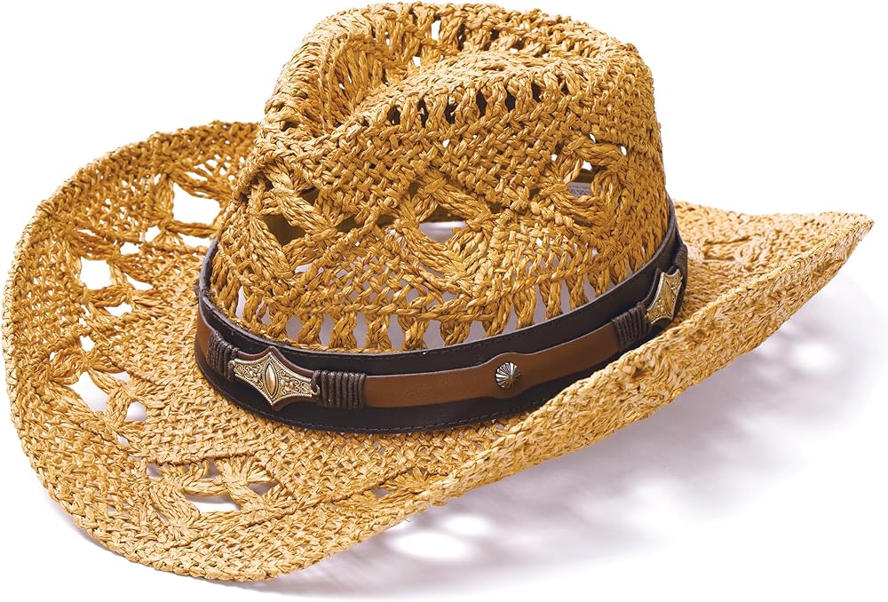 High-Quality Faux Raffia Material: Crafted from premium faux raffia material, this cowboy hat offers durability and comfort. The faux raffia mimics the look and feel of natural fibers while being more sustainable and easier to maintain, making it a practical choice for everyday wear.