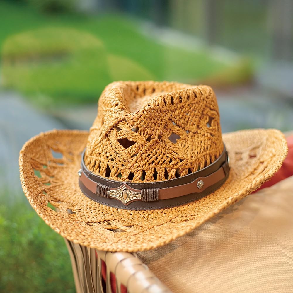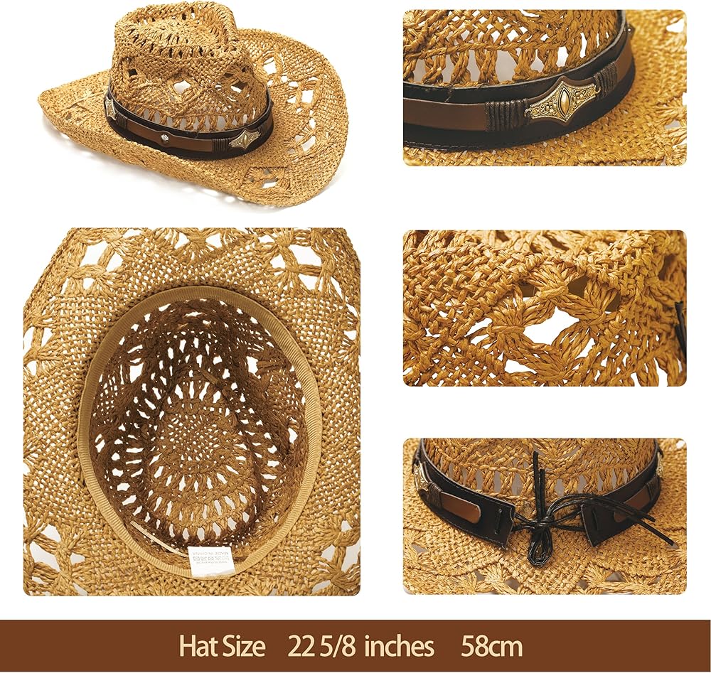 Fashionable Design: Combine the classic cowboy hat silhouette with trendy wide-brim decorative straps, this faux raffia cowboy hat is an absolute fashion statement. Its unique design effortlessly elevates your style quotient, making it a must-have accessory for any fashion-forward individual.