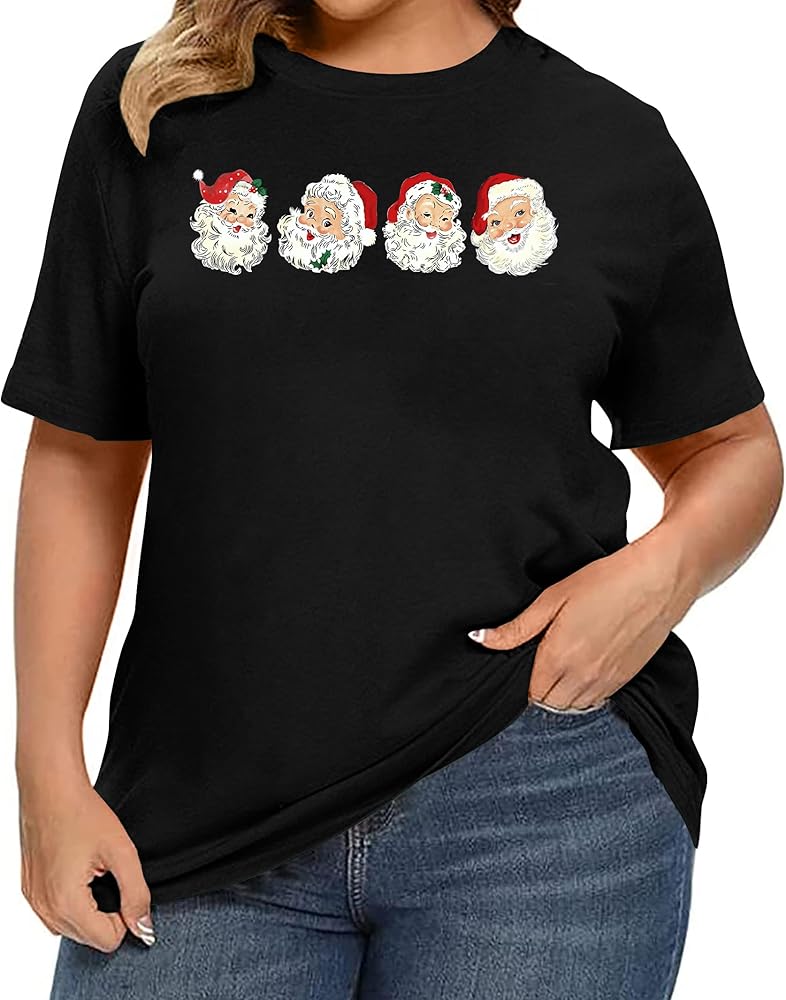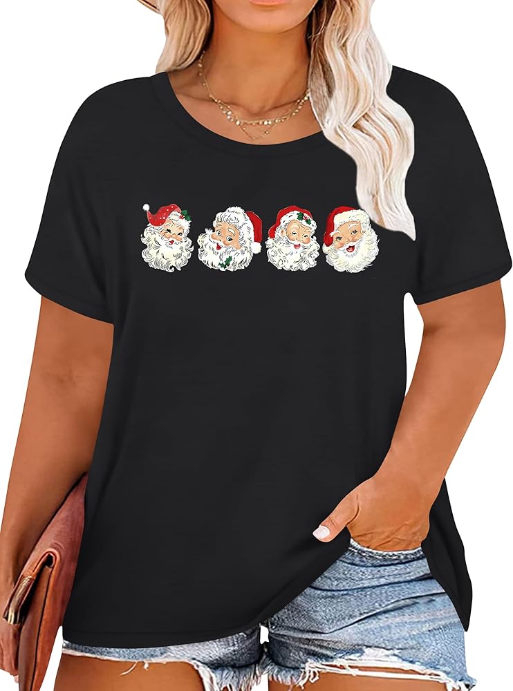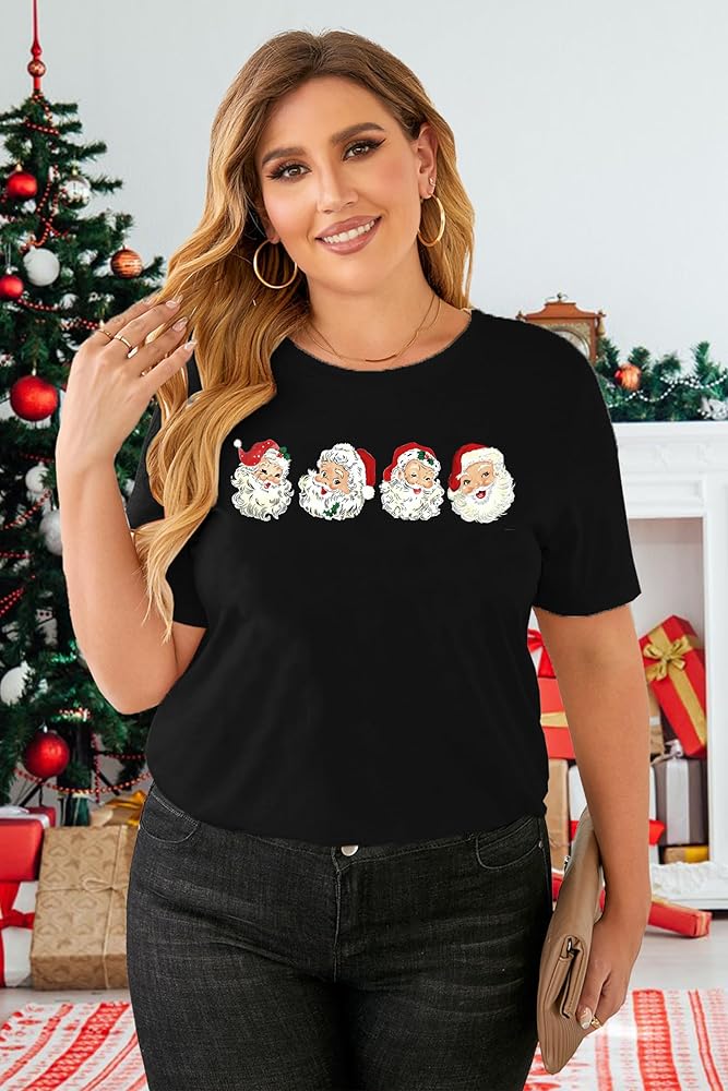 Unique Design: unique christmas santa, plus size christmas t shirt, christmas santa claus tops, xmas t-shirt, christmas holiday shirt, merry and bright shirts, plus sizer christmas t shirt The trendy design makes people shine, showing your difference.