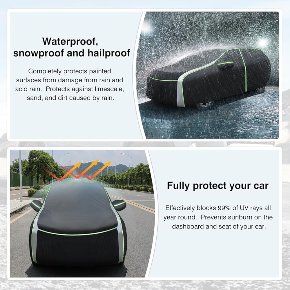 【All Weather & 360° Protection】 The Wrangler car cover provides comprehensive protection for the car. It can effectively protect the vehicle from various weather factors under severe weather conditions such as heavy rain, strong wind, and snow. In summer, it can also resist ultraviolet rays and keep the car interior cool.