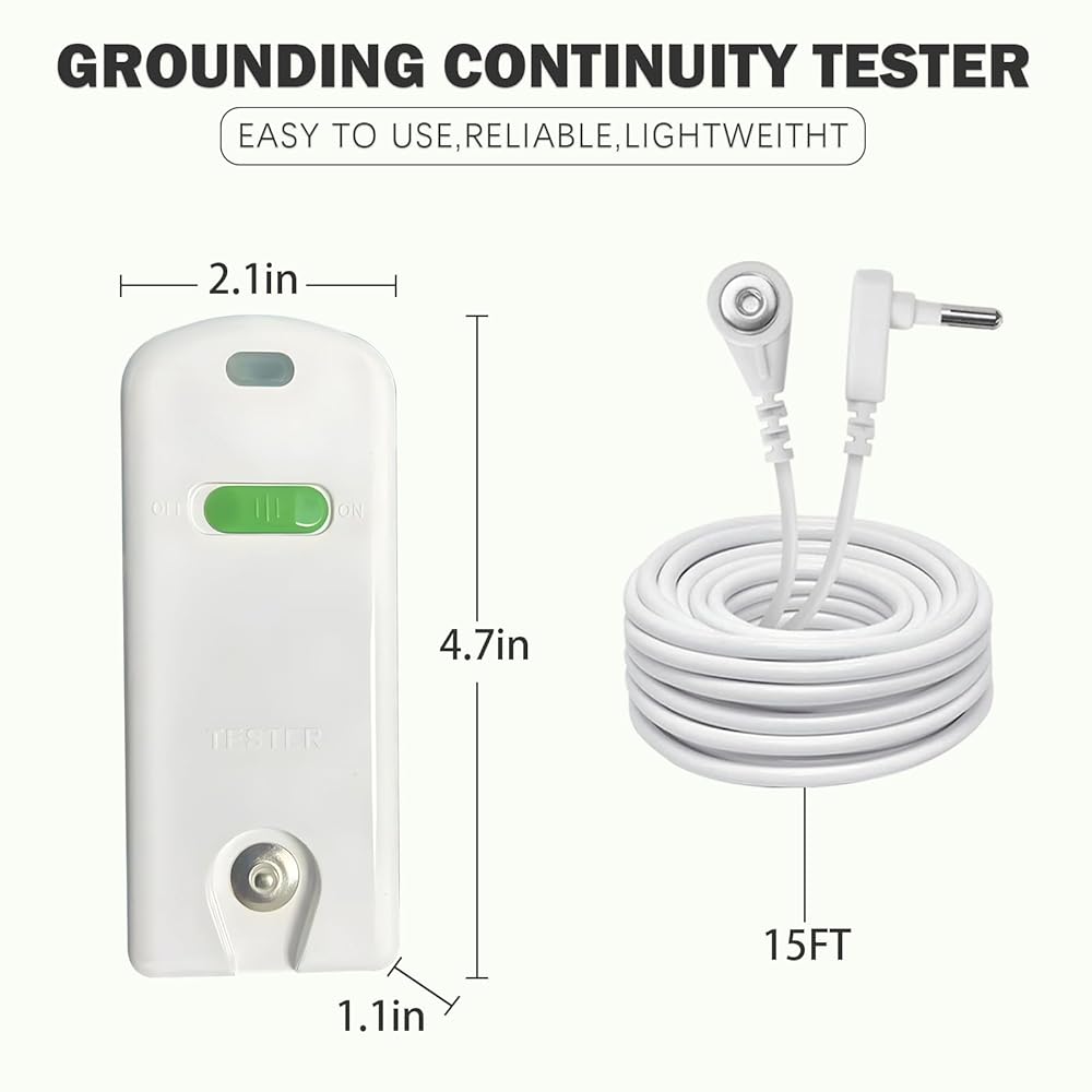 - سهل الاستخدام - يستغرق الأمر ثانية واحدة فقط لمعرفة ما إذا كان منتج التأريض موصلاً أم لا. لا يحتاج منتج التأريض الذي يتم اختباره إلى توصيله بمنفذ مؤرض. إذا كان منتج التأريض غير موصل، فلا يمكن تأريضه حتى لو تم توصيله بمأخذ مؤرض.